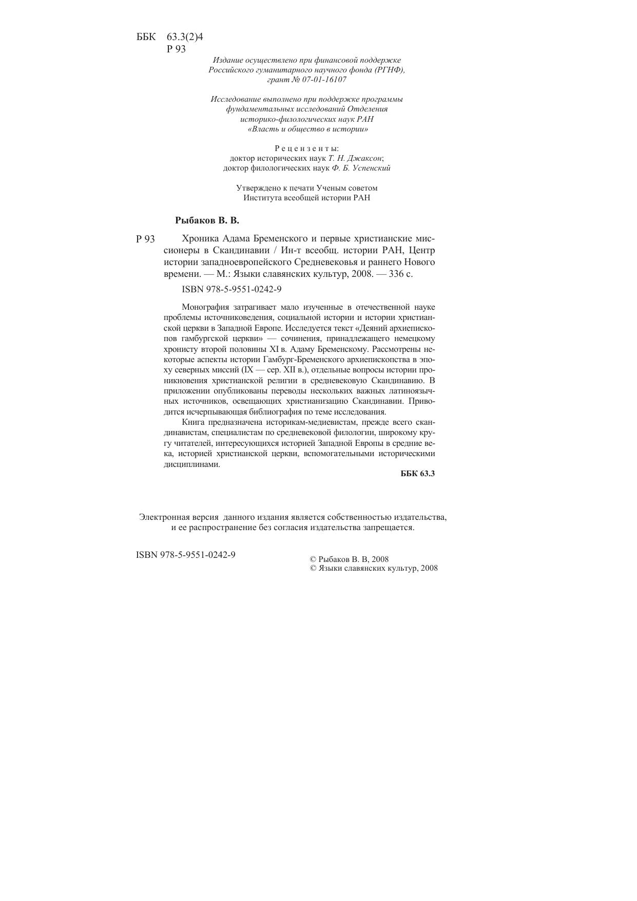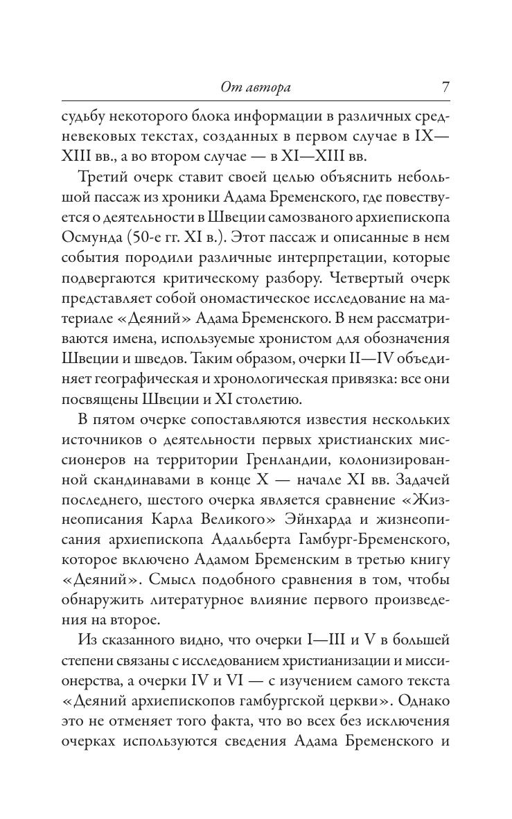 Монография затрагивает мало изученные в отечественной науке проблемы источниковедения, социальной истории и истории христианской церкви в Западной Европе. Исследуется текст «Деяний архиепископов гамбургской церкви» – сочинения, принадлежащего немецкомхронисту второй половины XI в. Адаму Бременскому. Рассмотрены не которые аспекты истории Гамбург-Бременского архиепископства в эпоху северных миссий (IX – сер. XII в.), отдельные вопросы истории проникновения христианской религии в средневековую Скандинавию. В приложении опубликованы переводы нескольких важных латиноязычных источников, освещающих христианизацию Скандинавии. Приводится исчерпывающая библиография по теме исследования.Книга предназначена историкам-медиевистам, прежде всего скандинавистам, специалистам по средневековой филологии, широкому кругу читателей, интересующихся историей Западной Европы в средние века, историей христианской церкви, вспомогательными историческими дисциплинами.