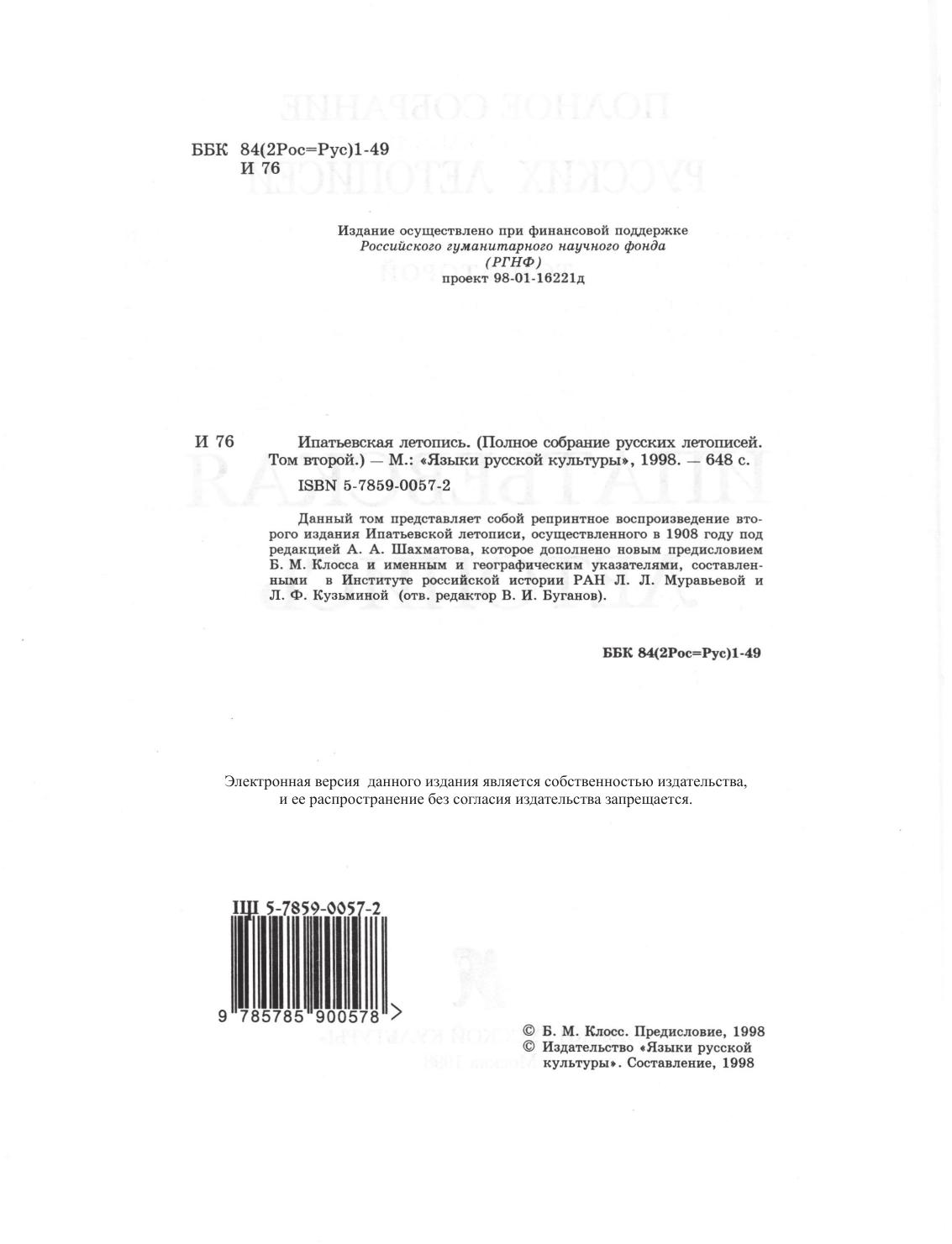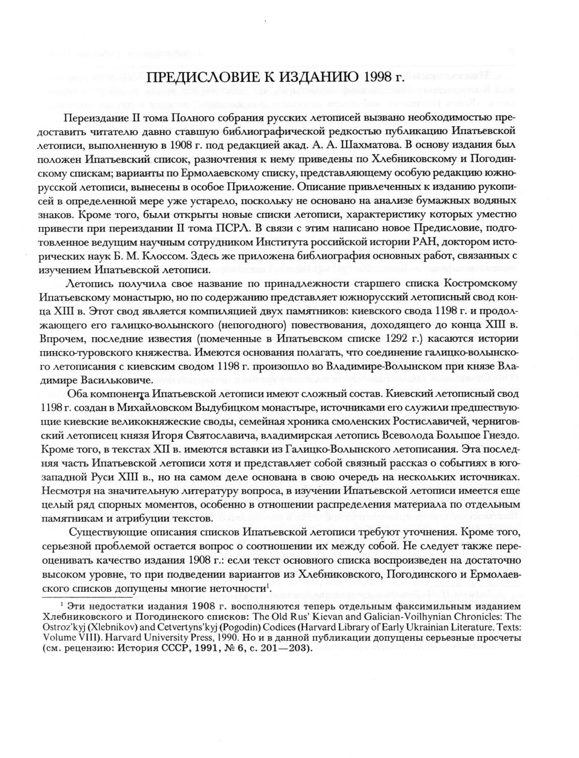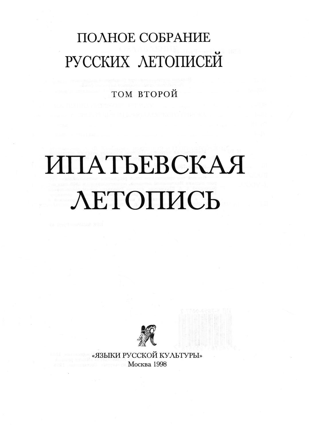 Данный том представляет собой репринтное воспроизведение второго издания Ипатьевской летописи, осуществленного в 1908 году под редакцией А.А. Шахматова, которое дополнено новым предисловием Б.М. Клосса и именным и географическим указателями, составленными в Институте российской истории РАН Л.Л. Муравьевой и Л.Ф. Кузьминой (отв. редактор В.И. Буганов).