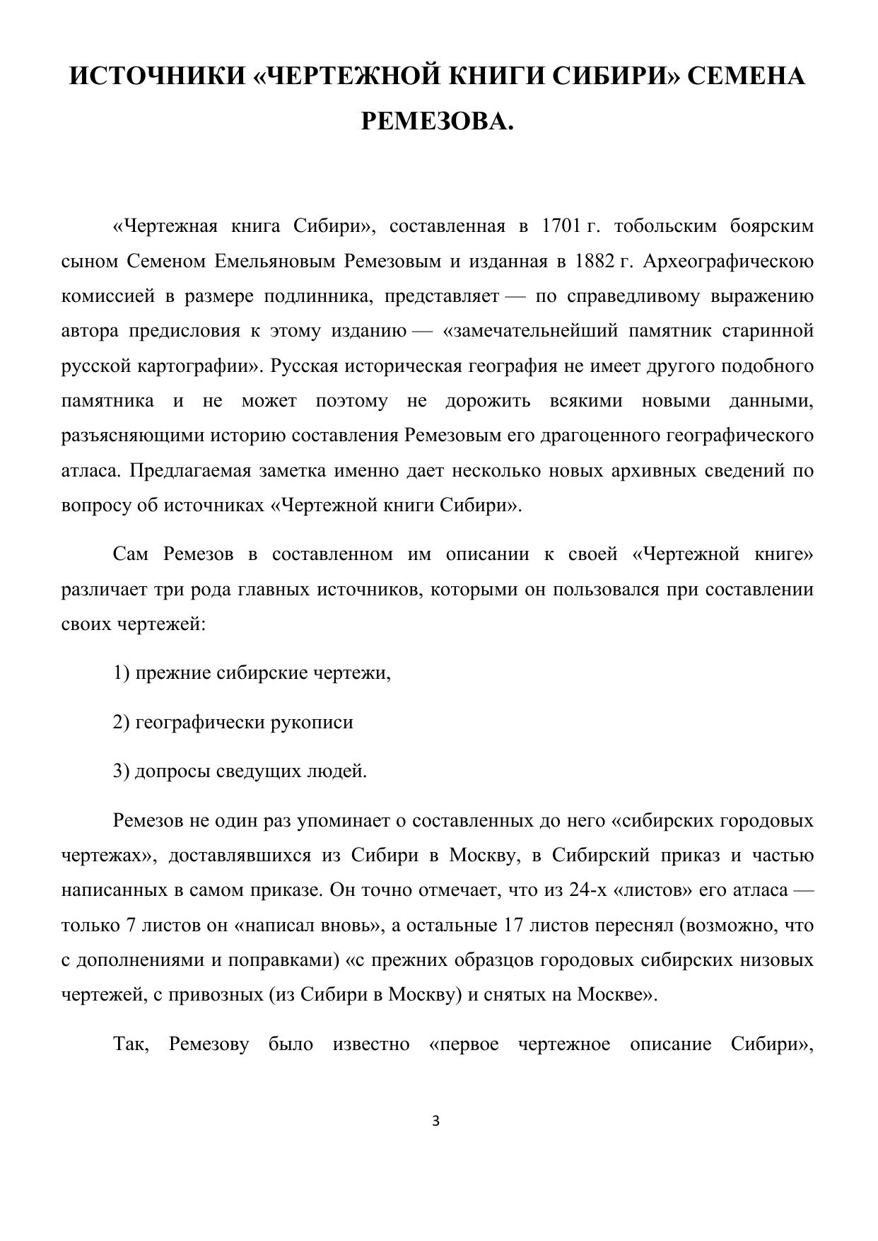 Источники Чертежной книги Сибири Семена Ремезова