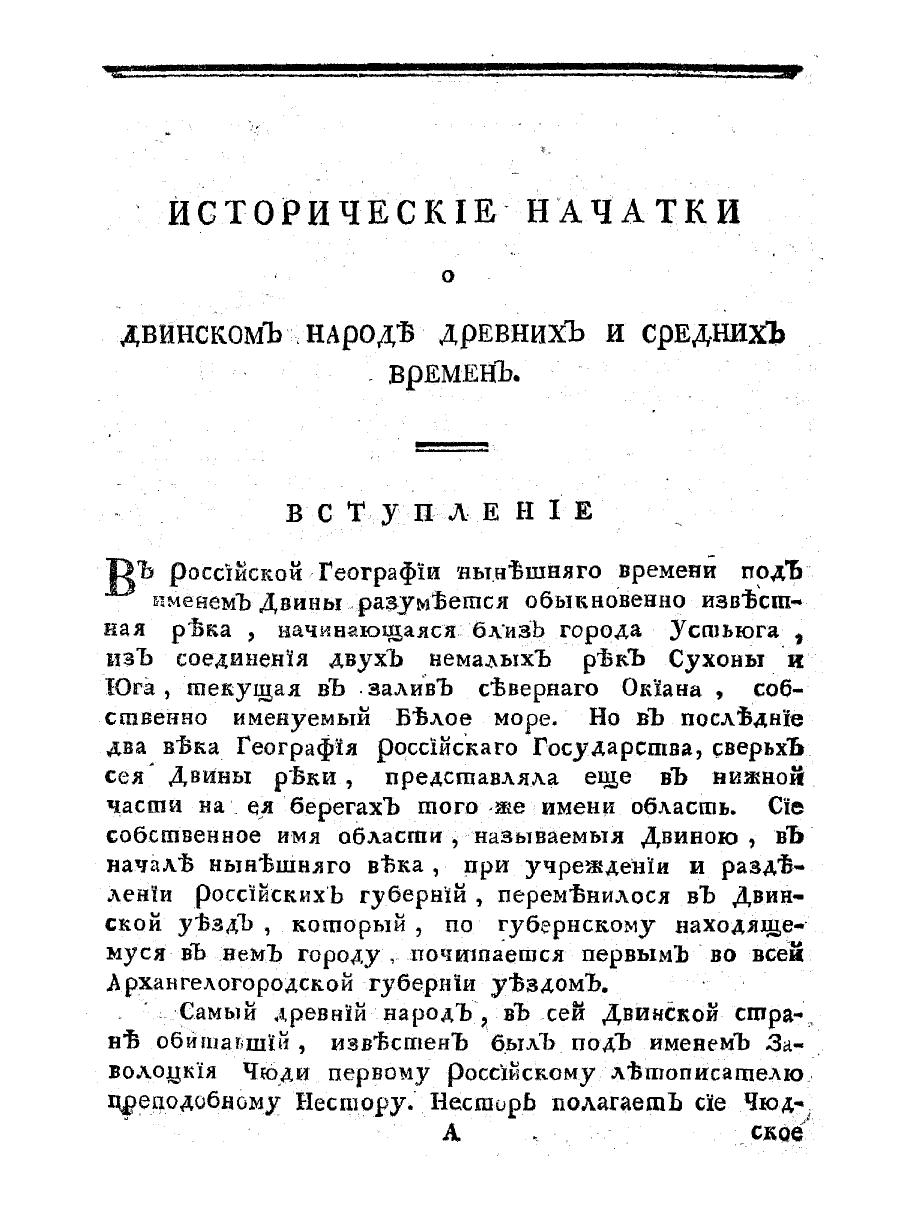 Исторические начатки о двинском народе древнего, среднего и нового времени