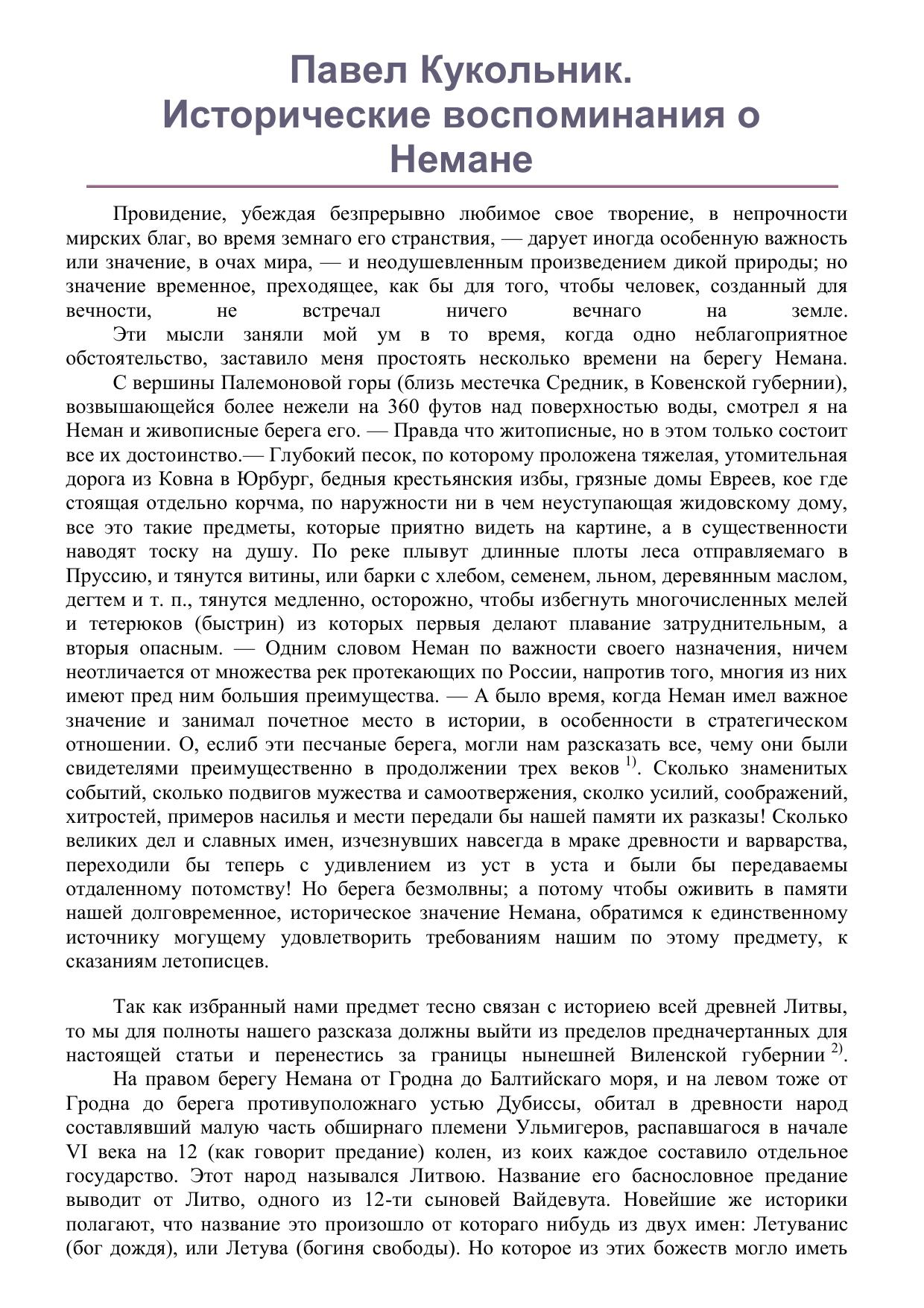 Исторические воспоминания о р. Немане