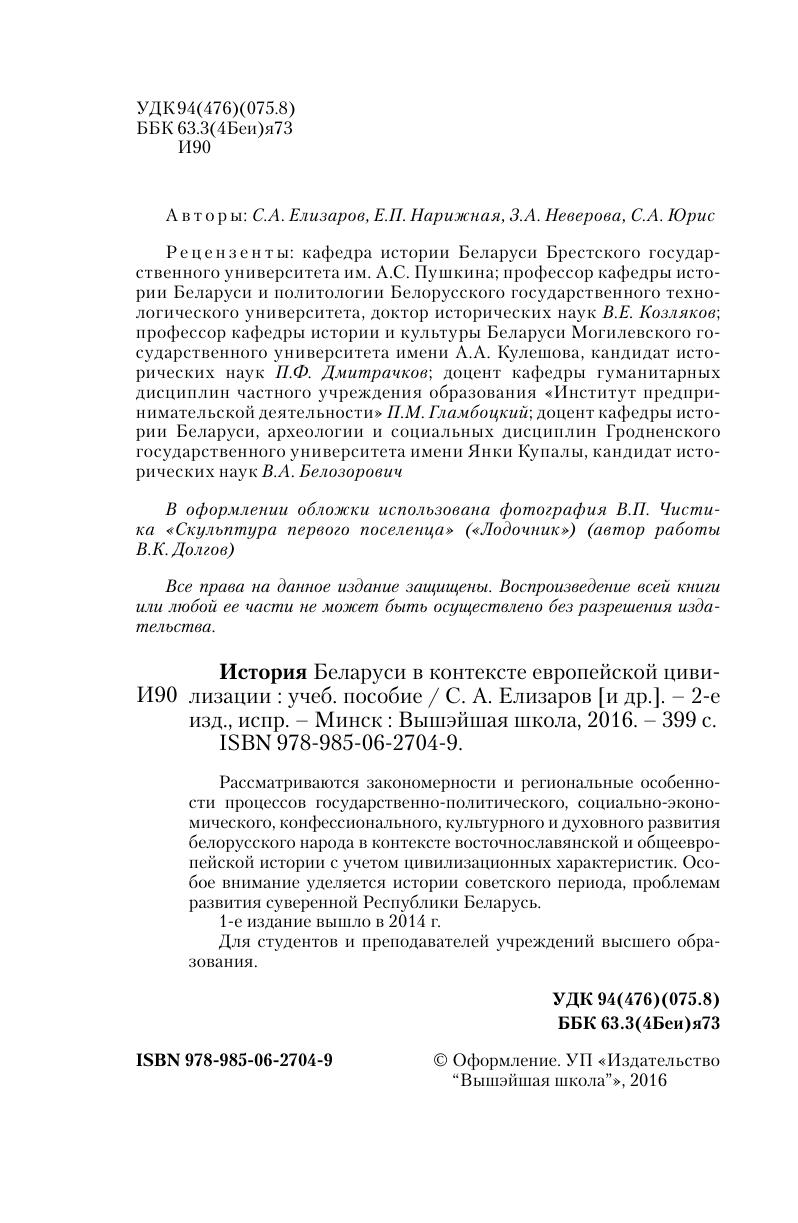 Рассматриваются закономерности и региональные особенности процессов государственно-политического, социально-экономического, конфессионального, культурного и духовного развития белорусского народа в контексте восточнославянской и общеевропейской истории с учетом цивилизационных характеристик. Особое внимание уделяется истории советского периода, проблемам развития суверенной Республики Беларусь. 1-е издание вышло в 2014 г. Для студентов и преподавателей учреждений высшего образования.