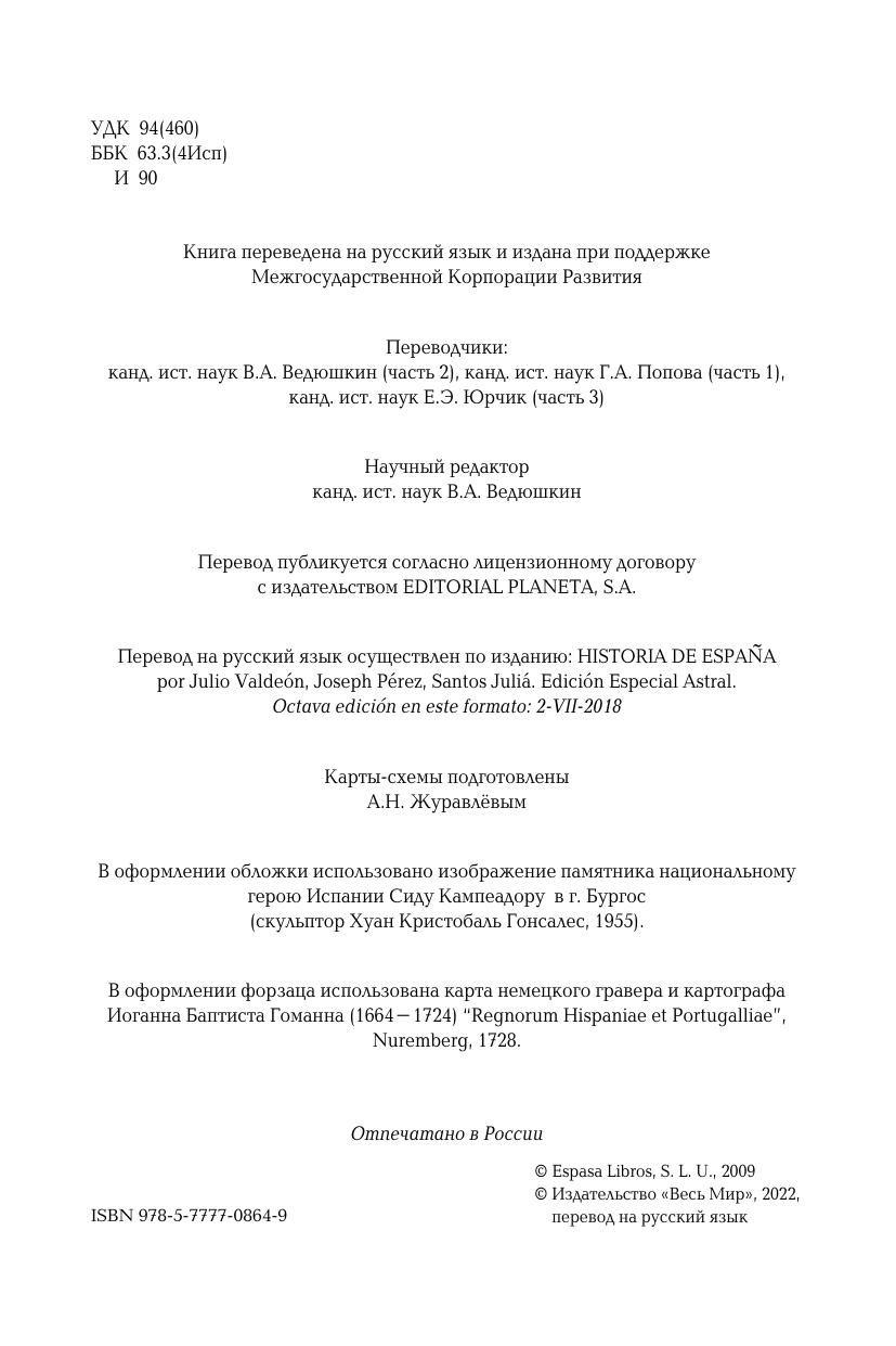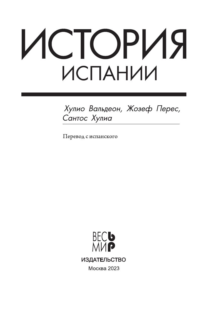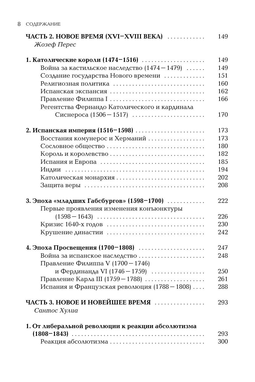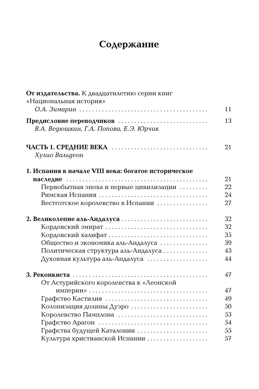 Общий очерк отечественной истории, написанный тремя выдающимися испанскими историками и выдержавший несколько переизданий, в Испании по праву считается классическим. В нем изложены основные события истории страны с древности до первых десятилетий XXI в. В частности, исследована эпоха господства мусульман на Пиренейском полуострове и борьба христианских государств за освобождение страны. Рассмотрены особенности социально-экономического и политического развития Испанской монархии, эволюция колониальной империи, взаимоотношения Церкви и государства, социокультурная специфика исторических областей. Проанализированы бурные события XIX – начала XXI в., включая Войну за независимость в начале XIX в., Гражданскую войну (1936–1939), франкистский режим, переход от диктатуры к демократии, особенности развития общенациональной и региональной национальной идентичности. Для преподавателей и студентов, историков-испанистов и для всех, интересующихся всеобщей историей.