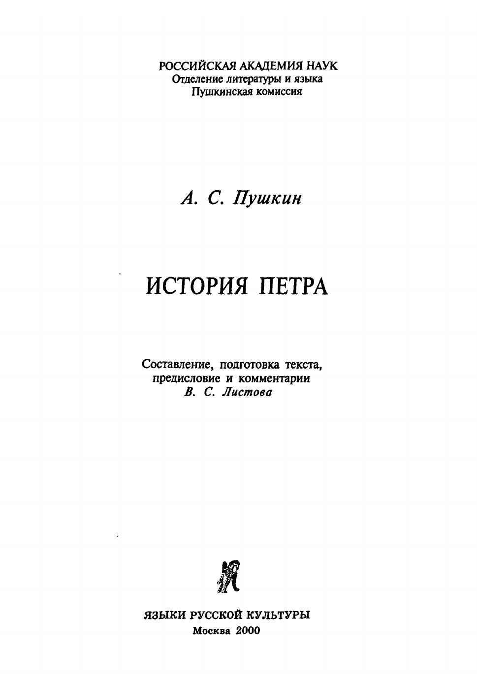 В книге воспроизведены пушкинские конспекты первых 9-ти томов 30 томника "Истории Петра Великого..." И.И. Голикова. Эти конспекты А.С. Пушкин вел в 1834-1835 гг. Археографическое оформление издания включает не только сверку пушкинского текста с автографом, но и предпринимаемое впервые разделение лексики Пушкина и лексики голиковского оригинала. Этим изданием существенно углубляется понимание самого длинного автографа писателя и расширяются словарь и словник его языка. Книга снабжена предисловиями и комментариями.