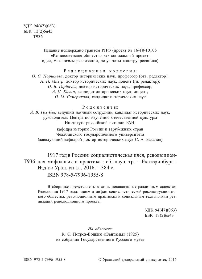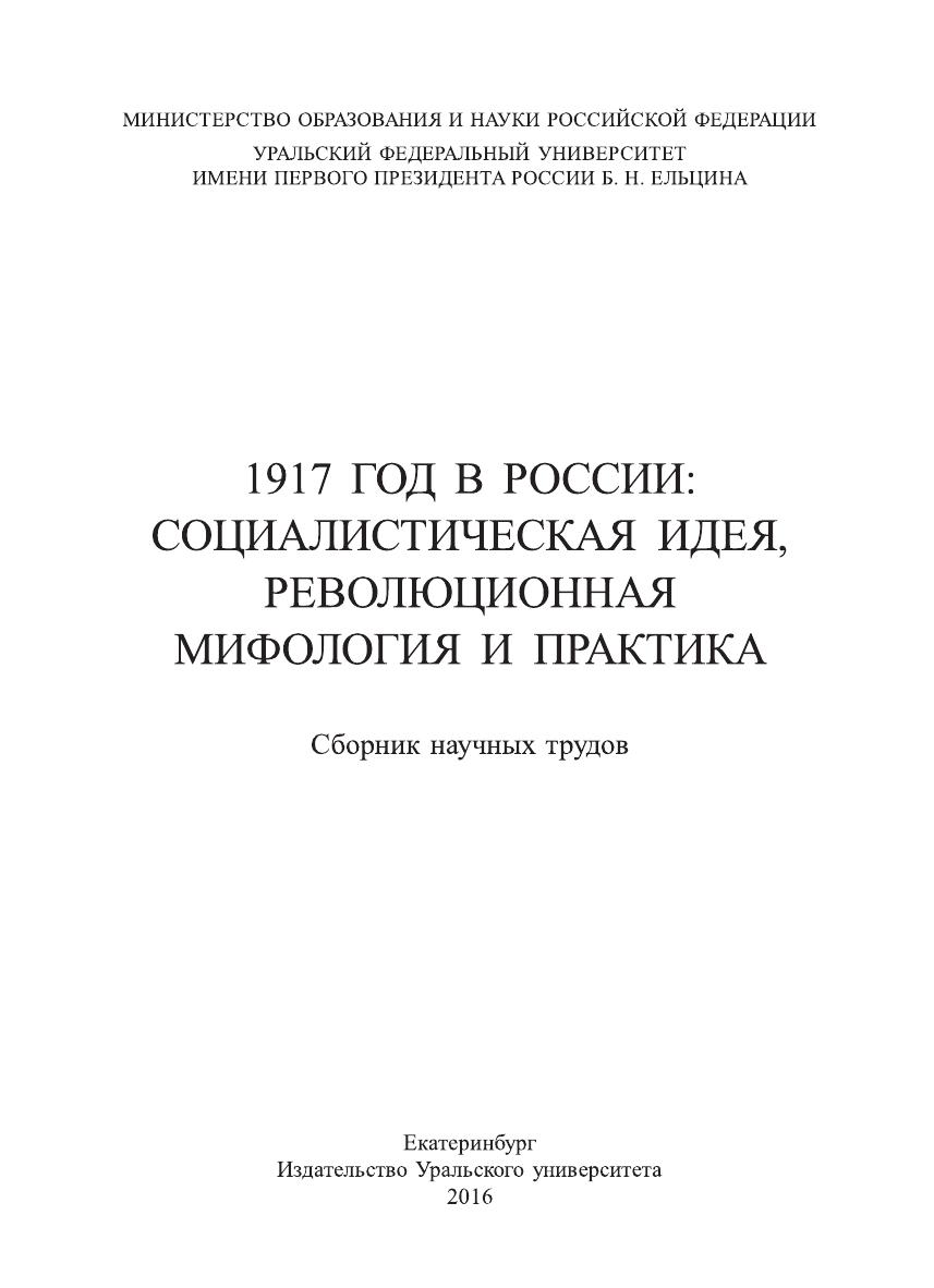 1917 год в России: социалистическая идея, революционная мифология и практика: сб. науч. тр.