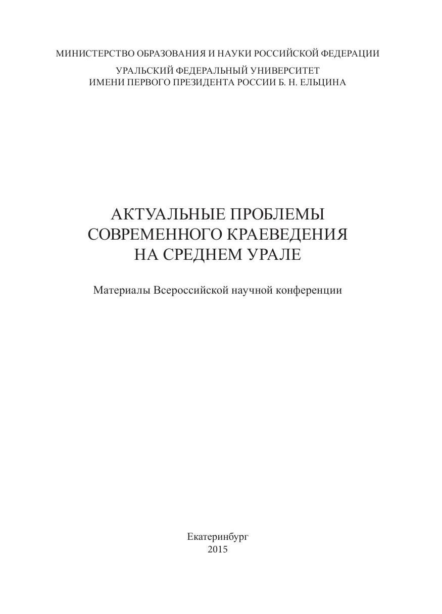 Актуальные проблемы современного краеведения на среднем Урале: сб. материалов всерос. науч. конф.