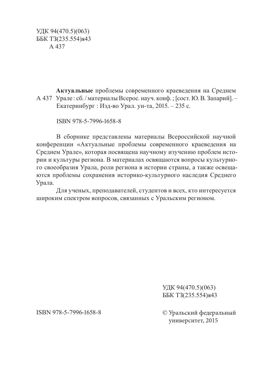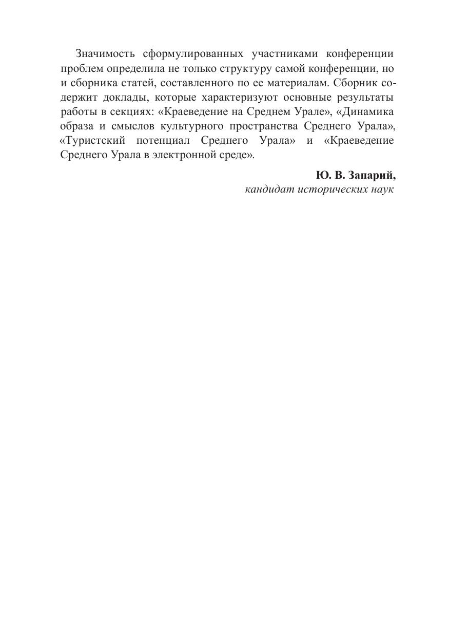 В сборнике представлены материалы Всероссийской научной конференции «Актуальные проблемы современного краеведения на Среднем Урале», которая посвящена научному изучению проблем истории и культуры региона. В материалах освящаются вопросы культурного своеобразия Урала, роли региона в истории страны, а также освещаются проблемы сохранения историко-культурного наследия Среднего Урала. Для ученых, преподавателей, студентов и всех, кто интересуется широким спектром вопросов, связанных с Уральским регионом.