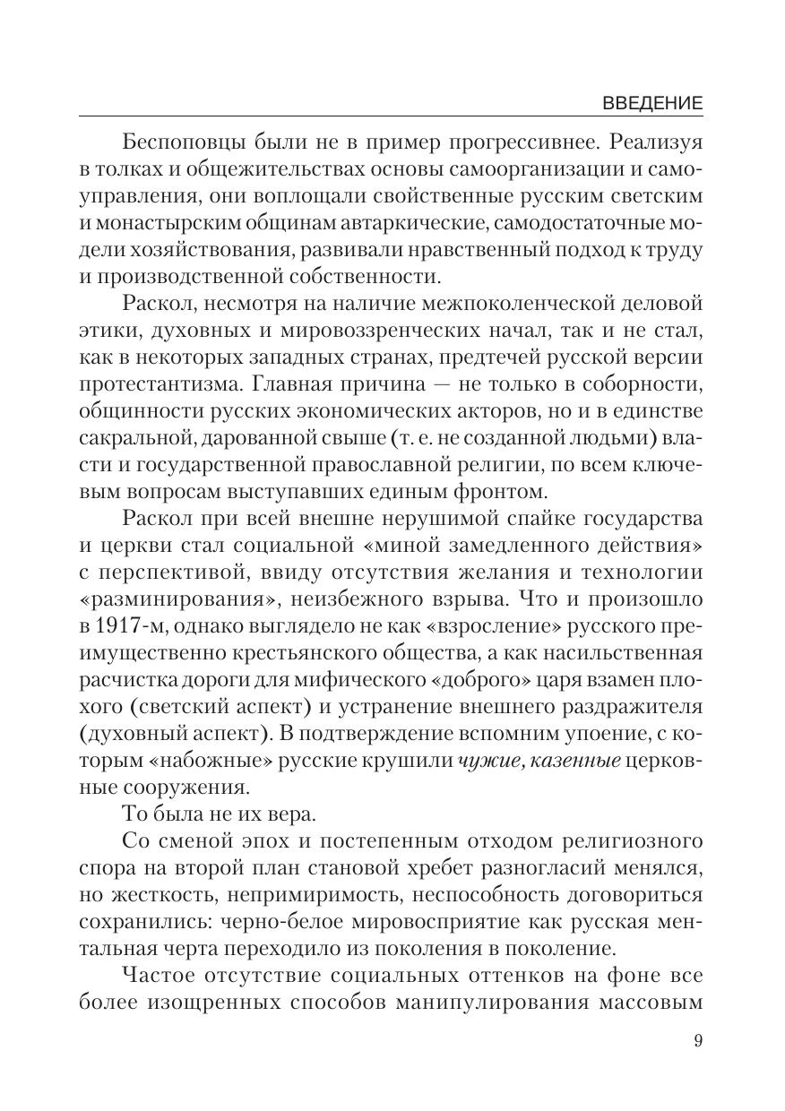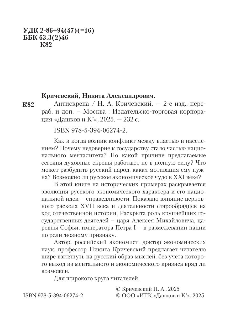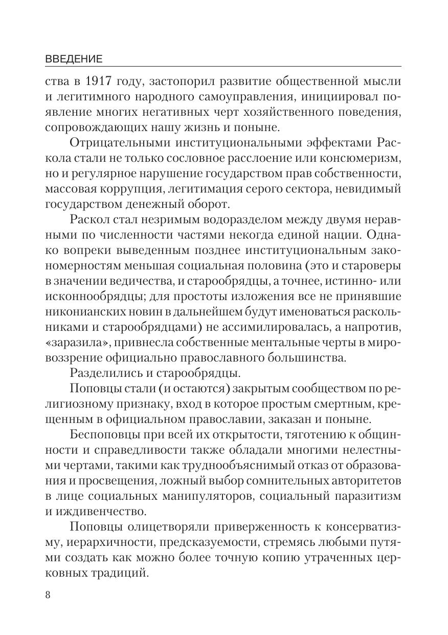 Как и когда возник конфликт между властью и населением? Почему недоверие к государству стало частью национального менталитета? По какой причине предлагаемые сегодня духовные скрепы работают не в полную силу? Что может разбудить русский народ, какая мотивация ему нужна? Возможно ли русское экономическое чудо в XXI веке? В этой книге на исторических примерах раскрывается эволюция русского экономического характера и его национальной идеи – справедливости. Показано влияние церковного раскола XVII века и деятельности старообрядцев на ход отечественной истории. Раскрыта роль крупнейших государственных деятелей – царя Алексея Михайловича, царевны Софьи, императора Петра I – в размежевании нации по религиозному признаку. Автор, российский экономист, доктор экономических наук, профессор Никита Кричевский предлагает читателю шире взглянуть на русский образ мыслей, без учета которого выход из ментального и экономического кризиса вряд ли возможен. Для широкого круга читателей.