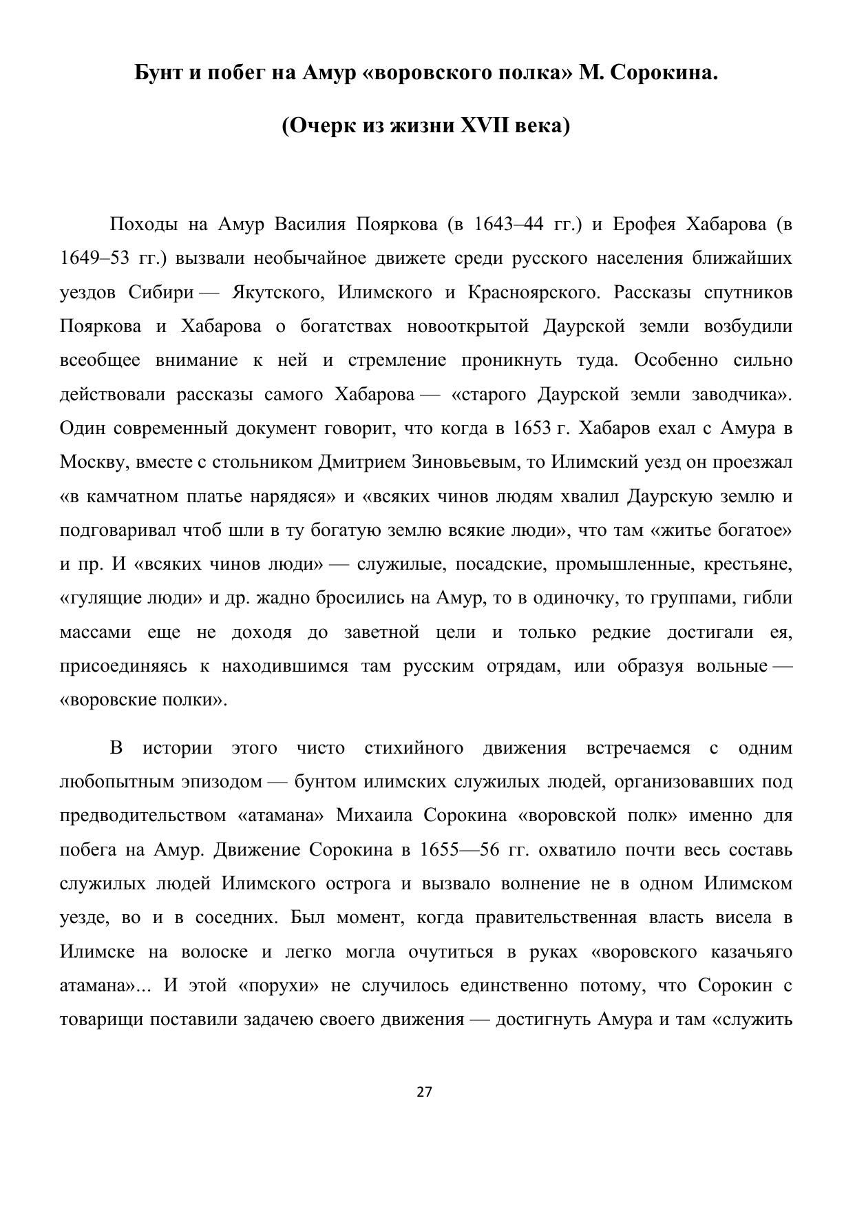 Бунт и побег на Амур «воровского полка» М. Сорокина. (Очерк из жизни XVII века)