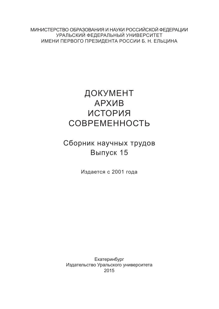 Рассматриваются проблемы источниковедения, историографии и методологии отечественной истории, теоретические и практические вопросы организации архивного дела; публикуются архивные источники, а также статьи начинающих исследователей. Сборник предназначен для студентов, аспирантов и преподавателей исторического факультета УрФУ, специалистов в области архивововедения, документоведения и информационного обеспечения управления.