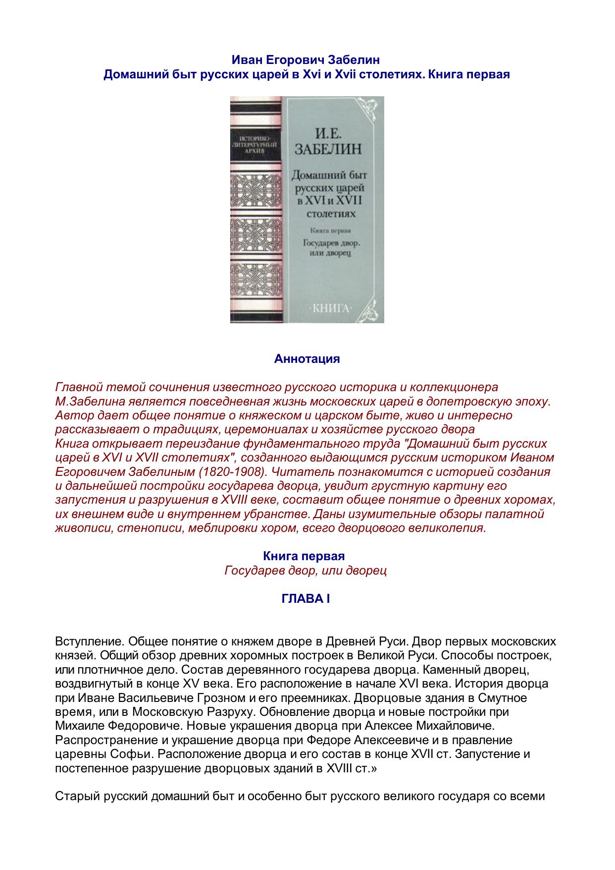 Домашний быт русских царей в XVI-XVII веках