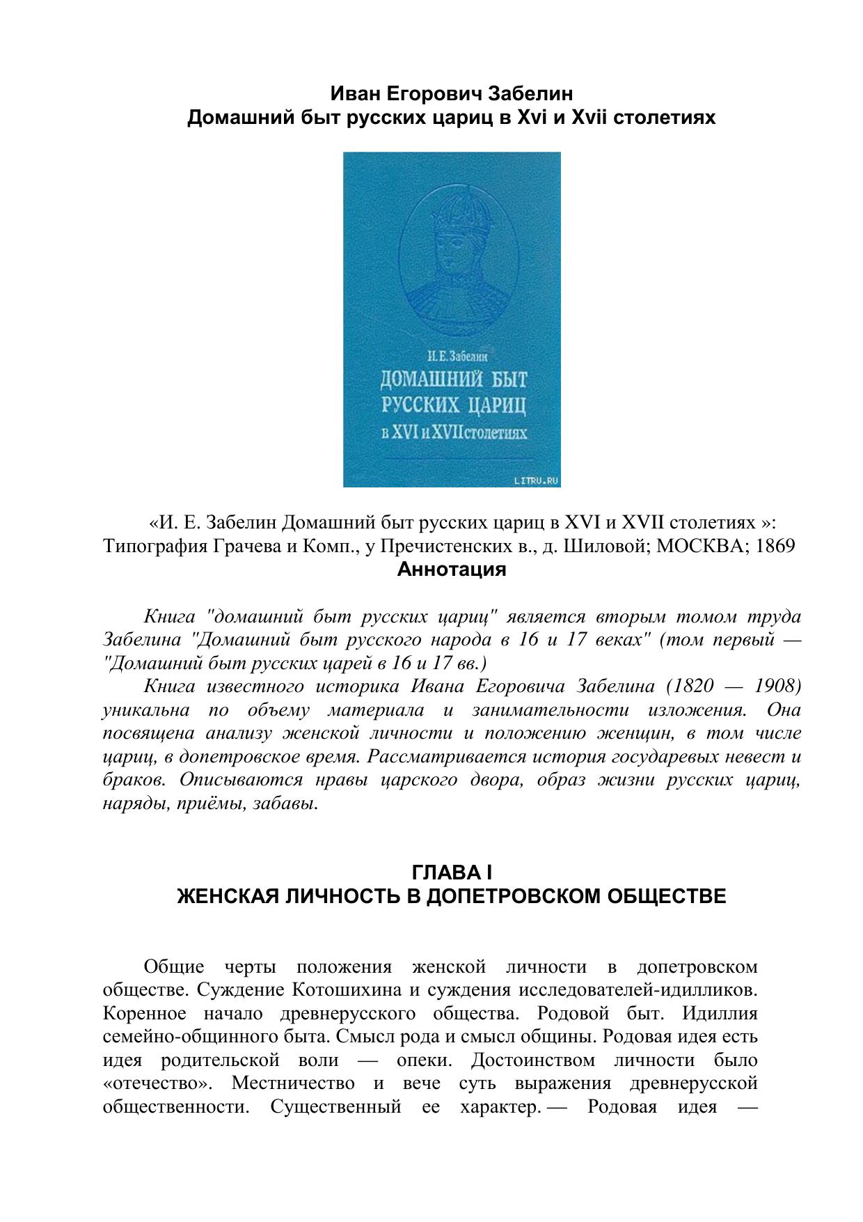 Домашний быт русских цариц в XVI-XVII веках
