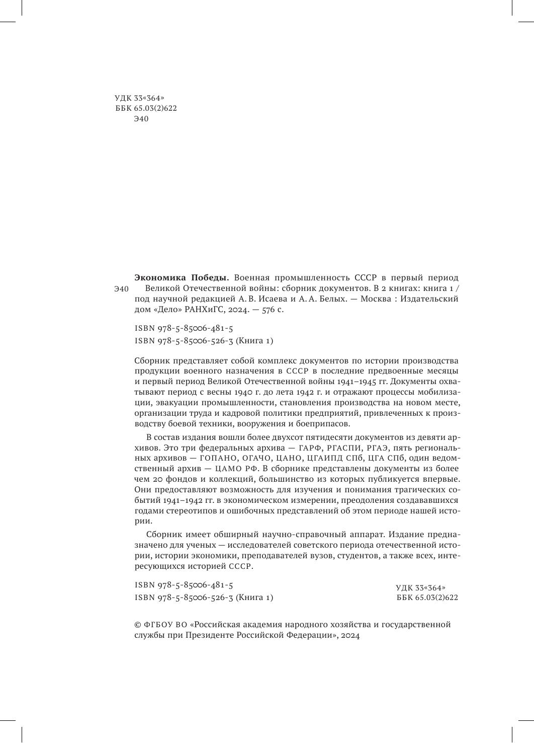 Экономика Победы. Военная промышленность СССР в первый период Великой Отечественной войны: сборник документов. В 2 книгах: книга 1