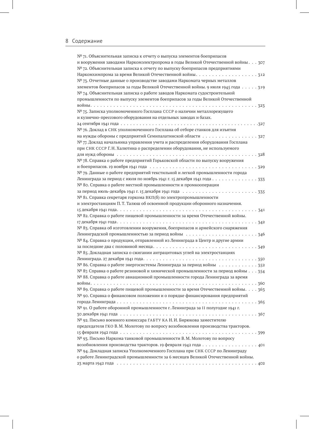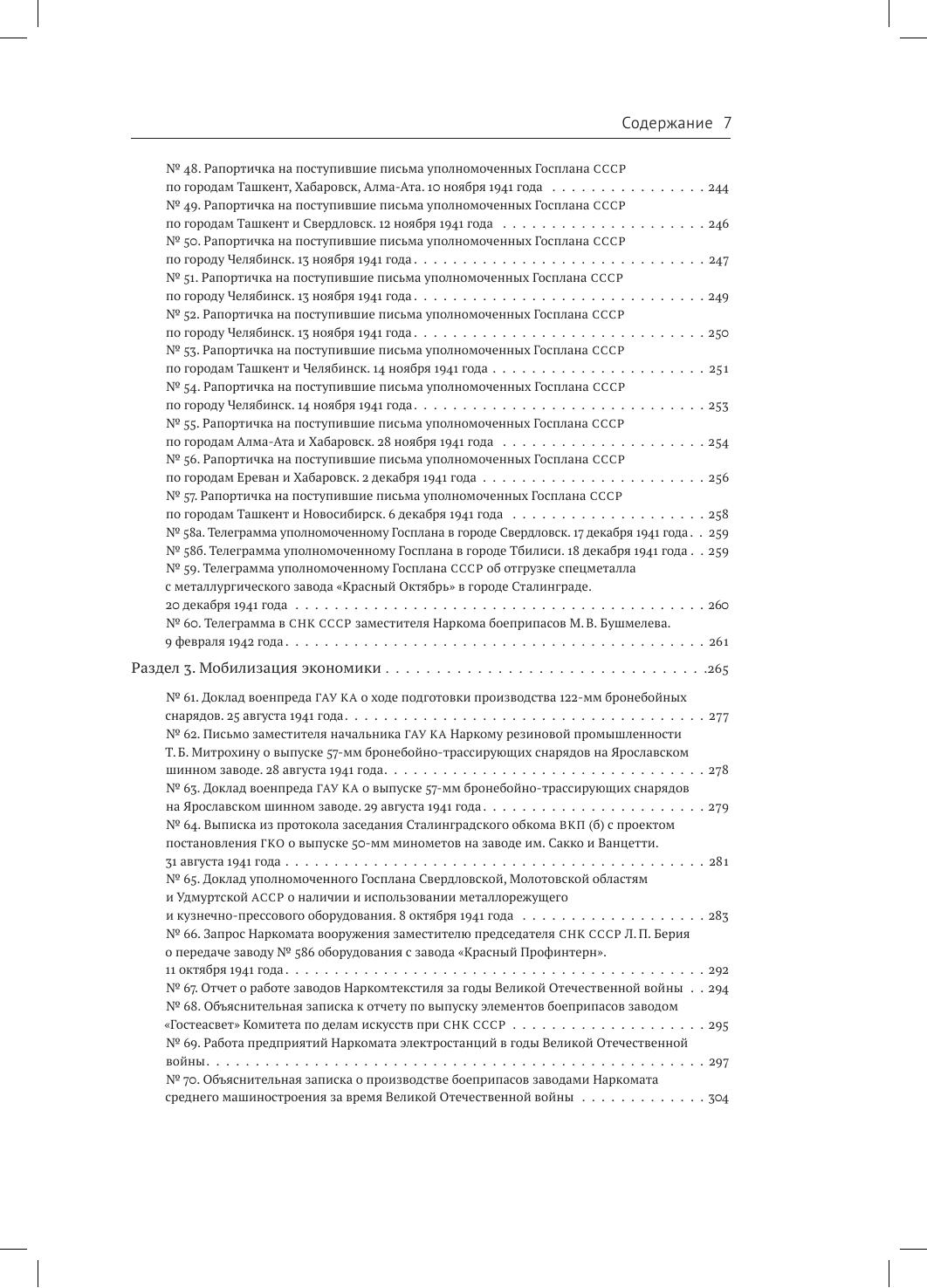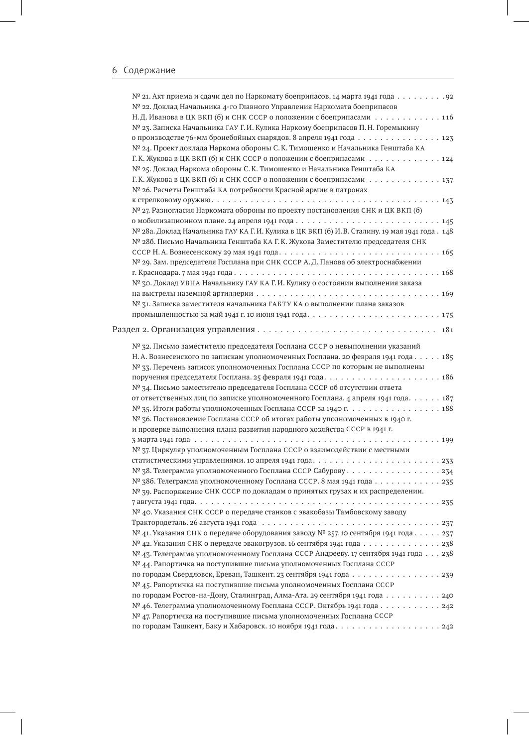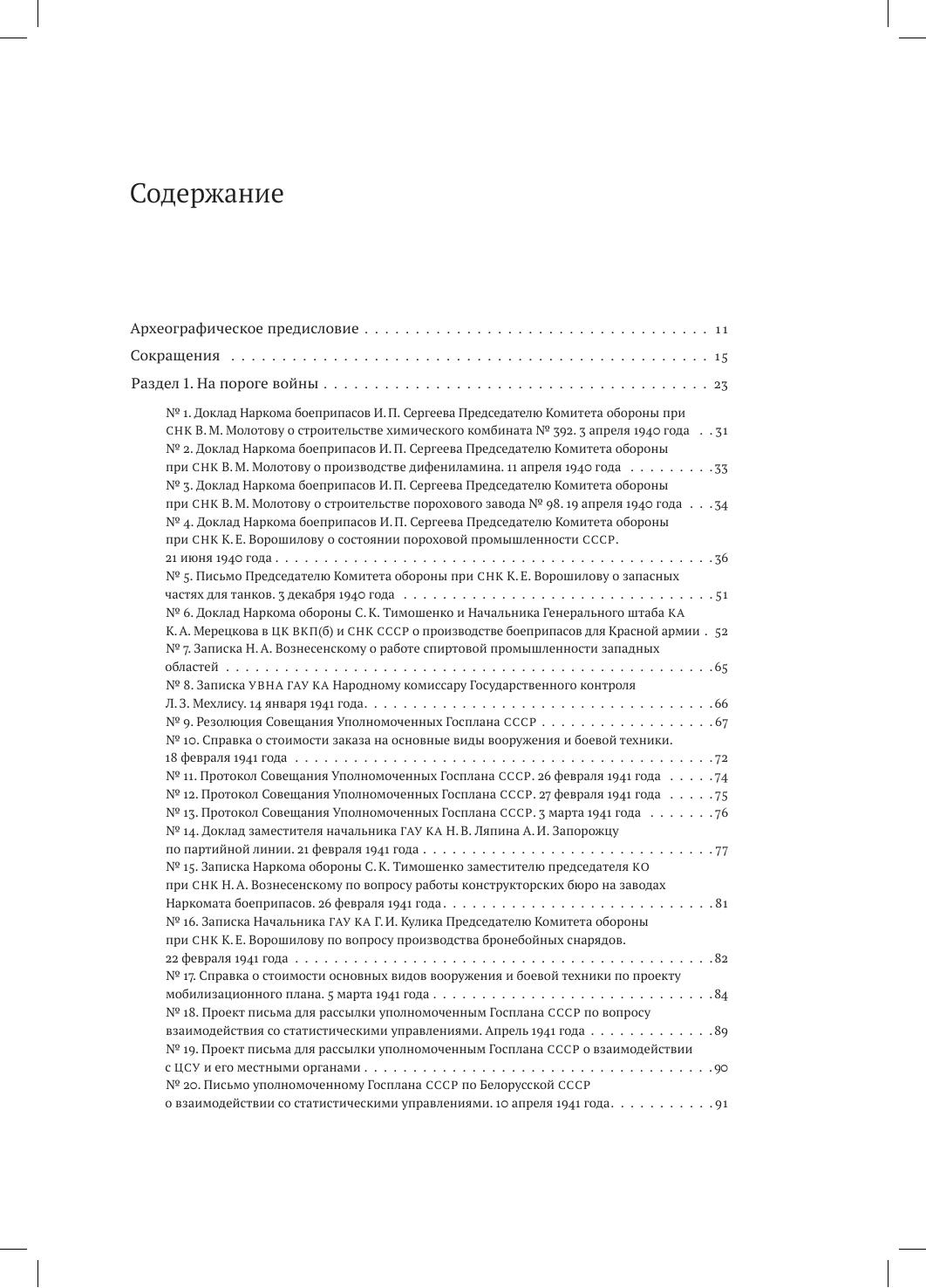 Сборник представляет собой комплекс документов по истории производства продукции военного назначения в СССР в последние предвоенные месяцы и первый период Великой Отечественной войны 1941–1945 гг. Документы охватывают период с весны 1940 г. до лета 1942 г. и отражают процессы мобилизации, эвакуации промышленности, становления производства на новом месте, организации труда и кадровой политики предприятий, привлеченных к производству боевой техники, вооружения и боеприпасов. В состав издания вошли более двухсот пятидесяти документов из девяти архивов. Это три федеральных архива — ГАРФ, РГАСПИ, РГАЭ, пять региональных архивов — ГОПАНО, ОГАЧО, ЦАНО, ЦГАИПД СПб, ЦГА СПб, один ведомственный архив — ЦАМО РФ. В сборнике представлены документы из более чем 20 фондов и коллекций, большинство из которых публикуется впервые. Они предоставляют возможность для изучения и понимания трагических событий 1941–1942 гг. в экономическом измерении, преодоления создававшихся годами стереотипов и ошибочных представлений об этом периоде нашей истории. Сборник имеет обширный научно-справочный аппарат. Издание предназначено для ученых — исследователей советского периода отечественной истории, истории экономики, преподавателей вузов, студентов, а также всех, интересующихся историей СССР.