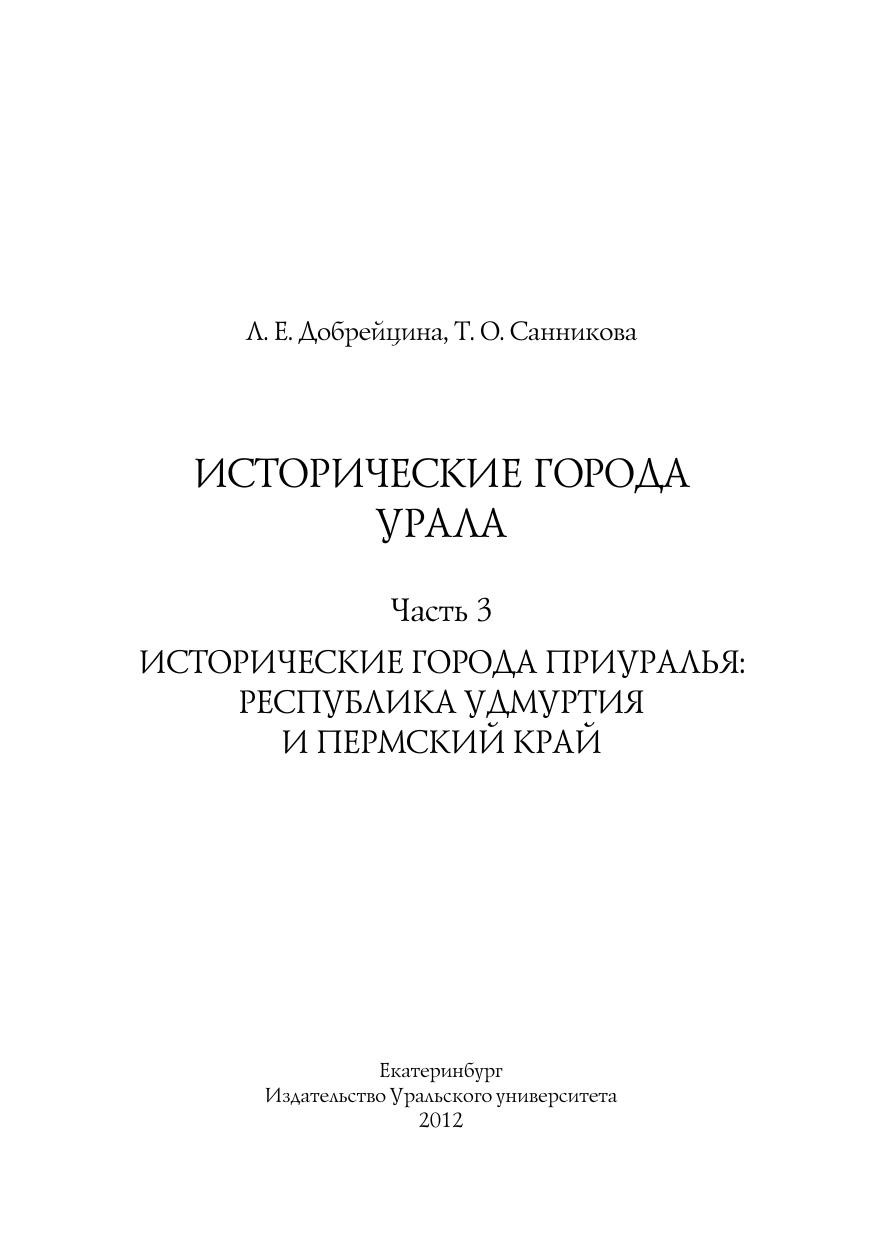 Исторические города Урала. Часть 3. Исторические города Приуралья: Республика Удмуртия и Пермский край: учебное пособие