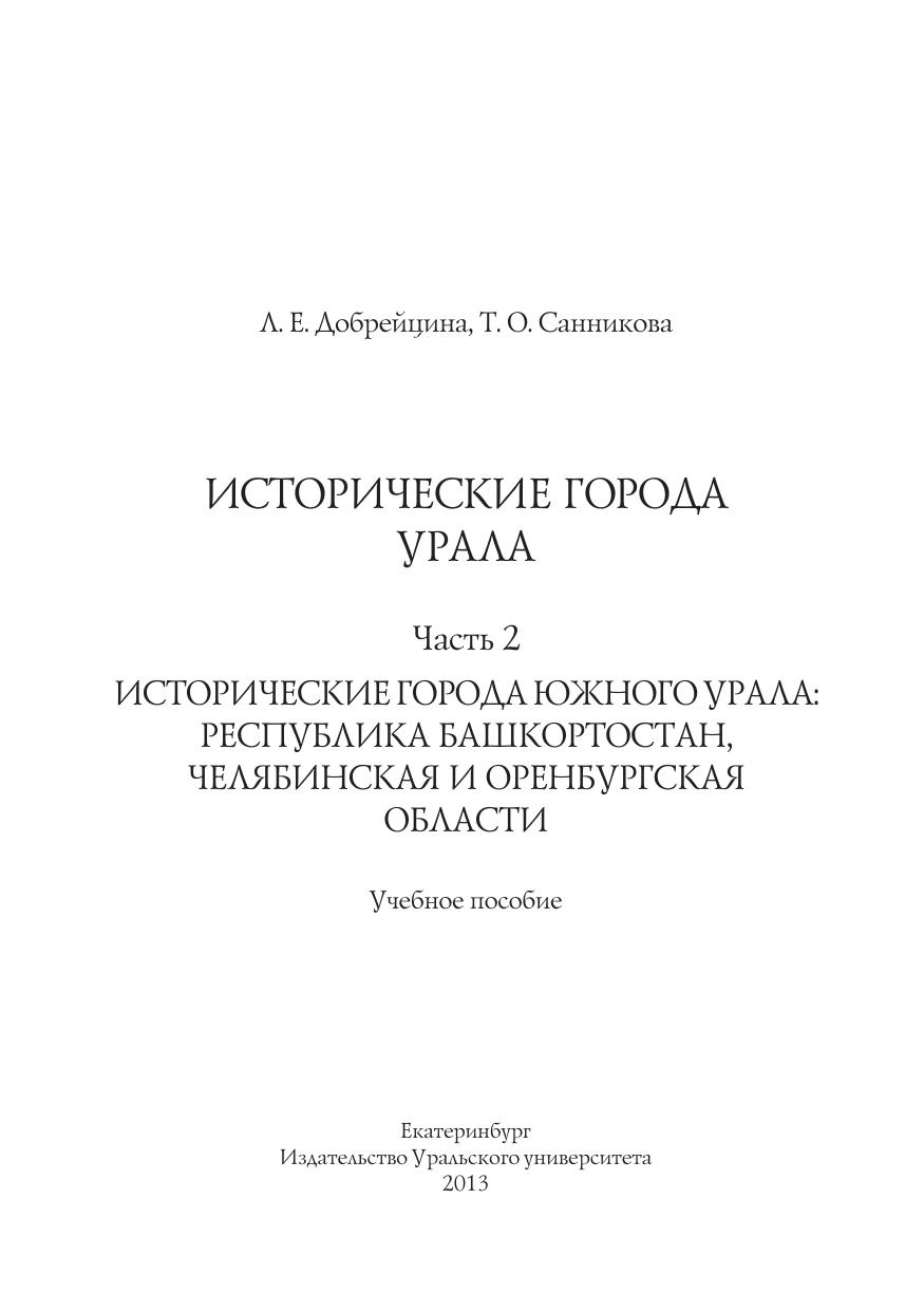 Исторические города Урала. Часть 2. Исторические города Южного Урала: Республика Башкортостан, Челябинская и Оренбургская области: учебное пособие
