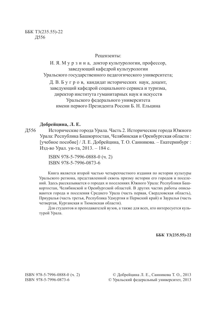 Книга является второй частью четырехчастного издания по истории культуры Уральского региона, представленной сквозь призму истории его городов и поселений. Здесь рассказывается о городах и поселениях Южного Урала: Республики Башкортостан, Челябинской и Оренбургской областей. В других частях работы описываются города и поселения Среднего Урала (часть первая, Свердловская область), Приуралья (часть третья, Республика Удмуртия и Пермский край) и Зауралья (часть четвертая, Курганская и Тюменская области). Для студентов и преподавателей вузов, а также для всех, кто интересуется культурой Урала.
