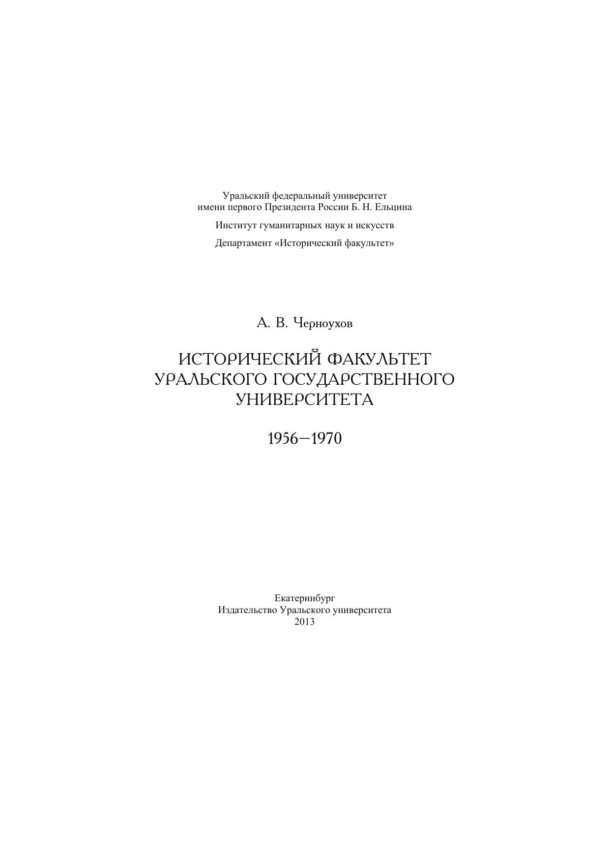 Исторический факультет Уральского государственного университета 1956–1970