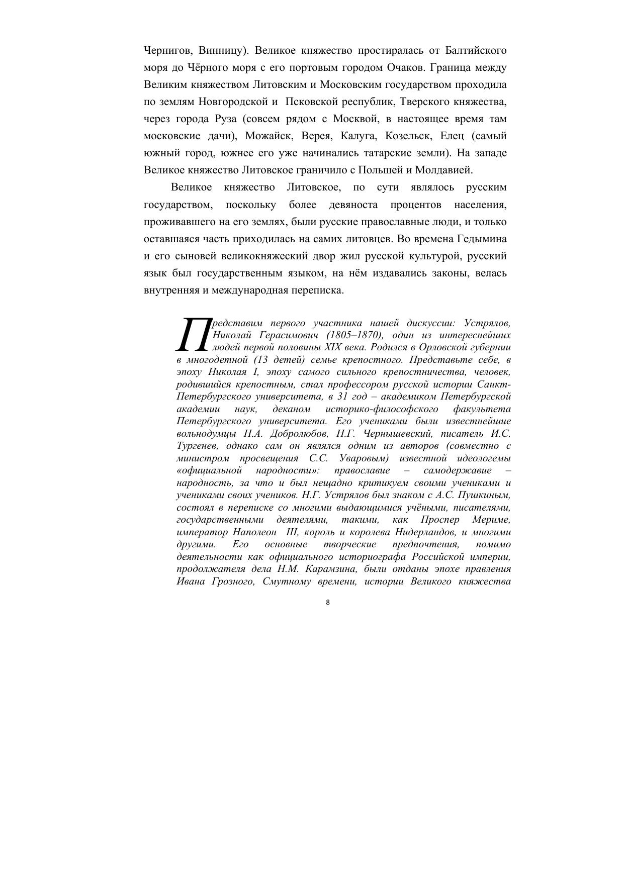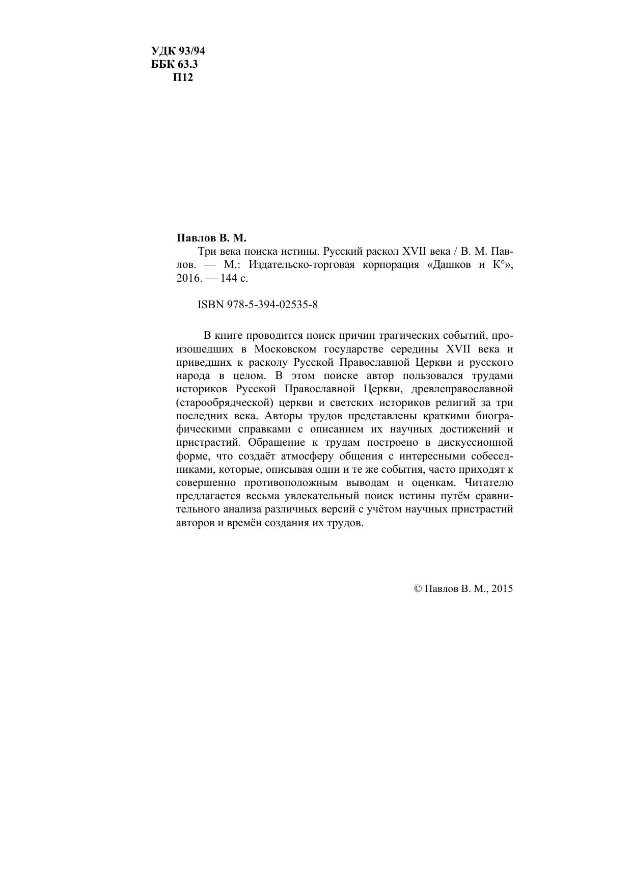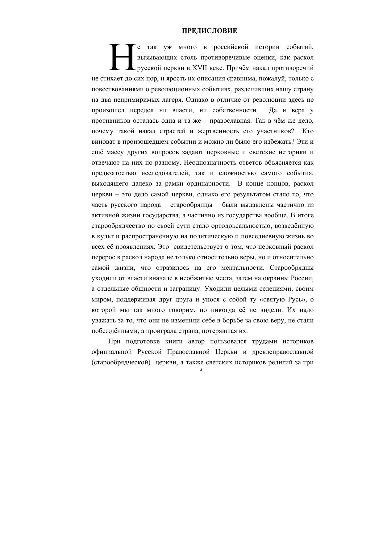 В книге проводится поиск причин трагических событий, произошедших в Московском государстве середины XVII века и приведших к расколу Русской Православной Церкви и русского народа в целом. В этом поиске автор пользовался трудами историков Русской Православной Церкви, древлеправославной (старообрядческой) церкви и светских историков религий за три последних века. Авторы трудов представлены краткими биографическими справками с описанием их научных достижений и пристрастий. Обращение к трудам построено в дискуссионной форме, что создаёт атмосферу общения с интересными собеседниками, которые, описывая одни и те же события, часто приходят к совершенно противоположным выводам и оценкам. Читателю предлагается весьма увлекательный поиск истины путём сравнительного анализа различных версий с учётом научных пристрастий авторов и времён создания их трудов.