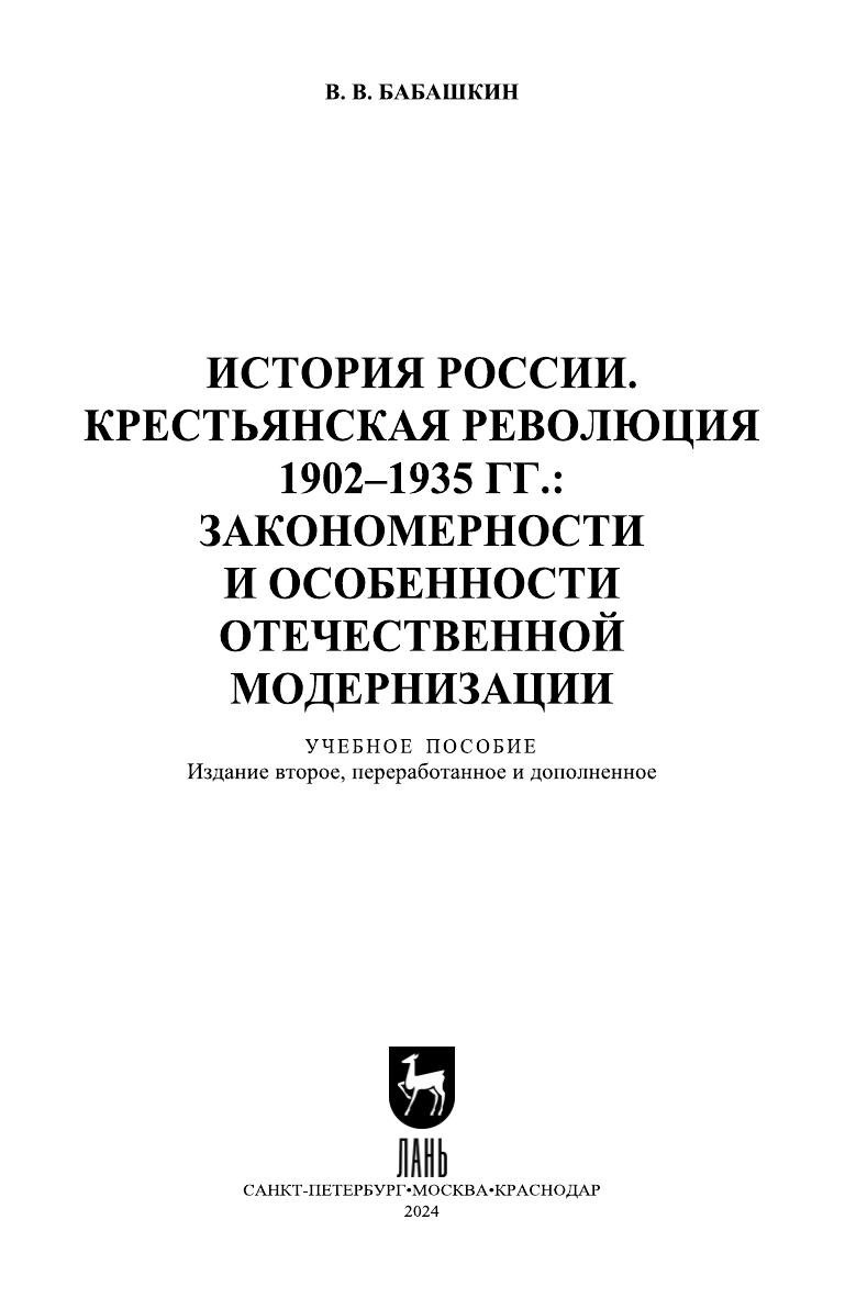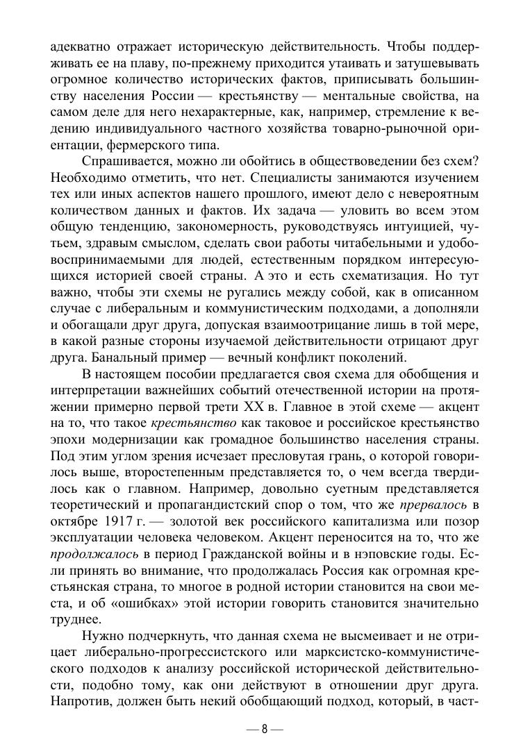 В учебном пособии представлен оригинальный общетеоретический взгляд на характер и содержание исторических событий в России в первой трети ХХ в., во многом предопределивших характер дальнейшего развития как Советского государства и общества, так и современной России. На основе обширных и разнообразных исторических источников доказывается, что в российской деревне с 1902 по 1935 г. разворачивалась и протекала крестьянская революция, которая развивалась по присущим ей внутренним законам, являясь при этом определяющим фактором тех бурных событий городской политики (и в 1905–1907 гг., и в 1917–1920 гг.), которые и принято называть российскими революциями. Автор обосновывает закономерность социально-политиче-ских итогов нэпа и перехода к политике коллективизации, без которого ни о какой индустриализации и модернизации советского общества не могло быть и речи. Учебное пособие предназначено для студентов вузов, изучающих такие общеобразовательные дисциплины, как «История России» и «Основы российской государственности». Оно может быть интересно как для профессиональных историков, в том числе преподающих историю в вузе, так и для всех, кто интересуется современными спорами о событиях российской истории.