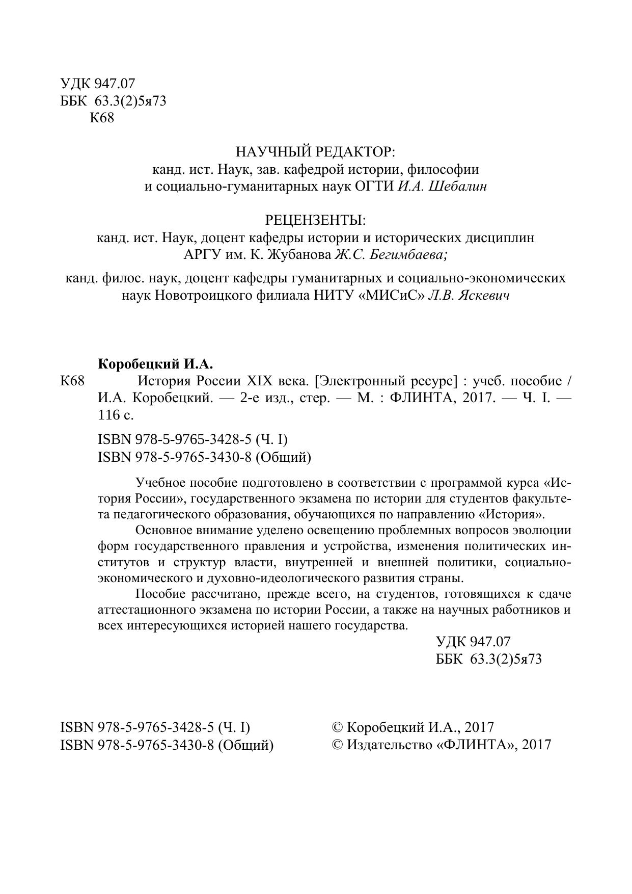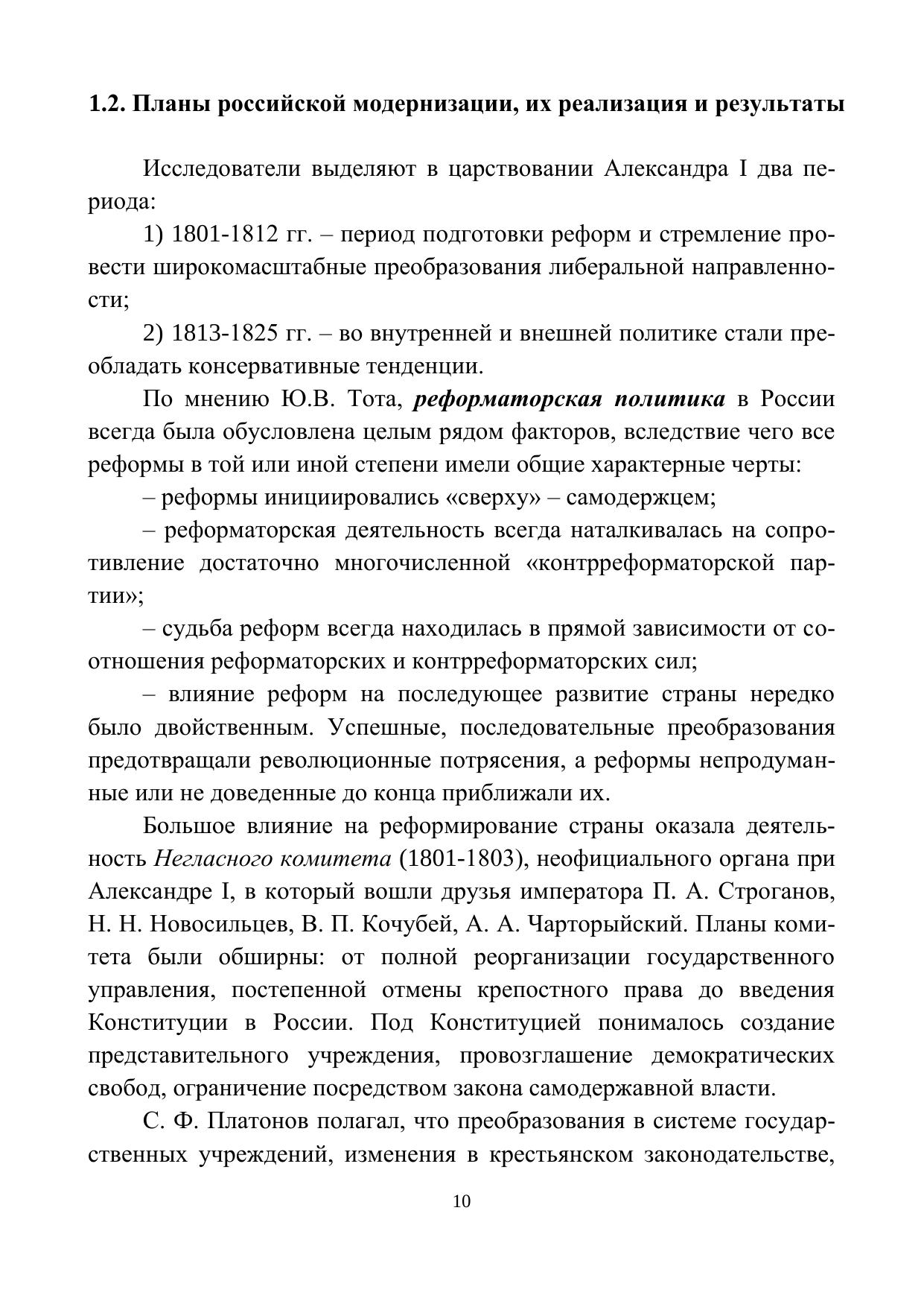 Учебное пособие подготовлено в соответствии с программой курса «История России», государственного экзамена по истории для студентов факультета педагогического образования, обучающихся по направлению «История». Основное внимание уделено освещению проблемных вопросов эволюции форм государственного правления и устройства, изменения политических институтов и структур власти, внутренней и внешней политики, социально-экономического и духовно-идеологического развития страны. Пособие рассчитано, прежде всего, на студентов, готовящихся к сдаче аттестационного экзамена по истории России, а также на научных работников и всех интересующихся историей нашего государства.