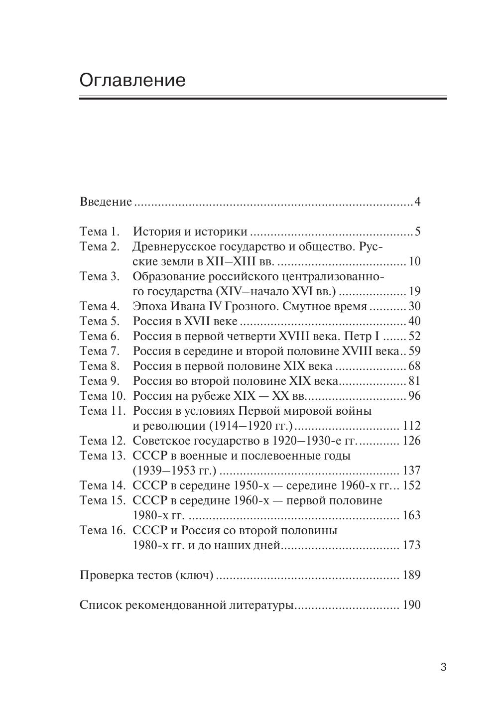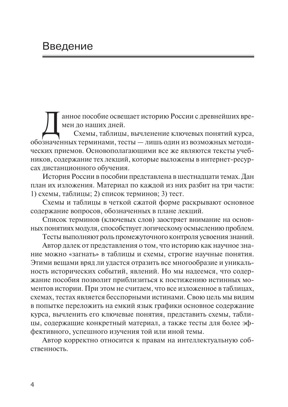 В учебном пособии отображена история России с древнейших времен до наших дней с учетом новейших данных, накопленных исторической наукой. Приведен список рекомендованной литературы. Материал изложен в наиболее удобной для усвоения, запоминания основных проблем и понятий форме. Пособие предназначено для систематизированного освоения курса истории России, контроля и закрепления полученных знаний как в традиционных формах обучения, так и в процессе дистанционного преподавания дисциплины. Для студентов высших учебных заведений всех направлений и форм обучения.