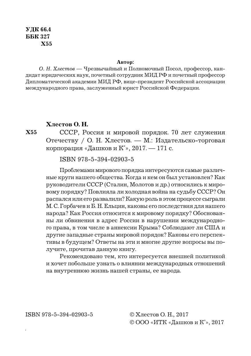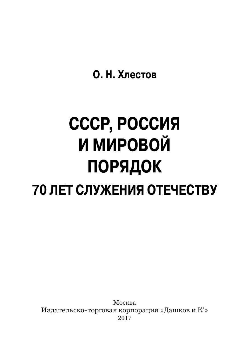 СССР, Россия и мировой порядок. 70 лет служения Отечеству