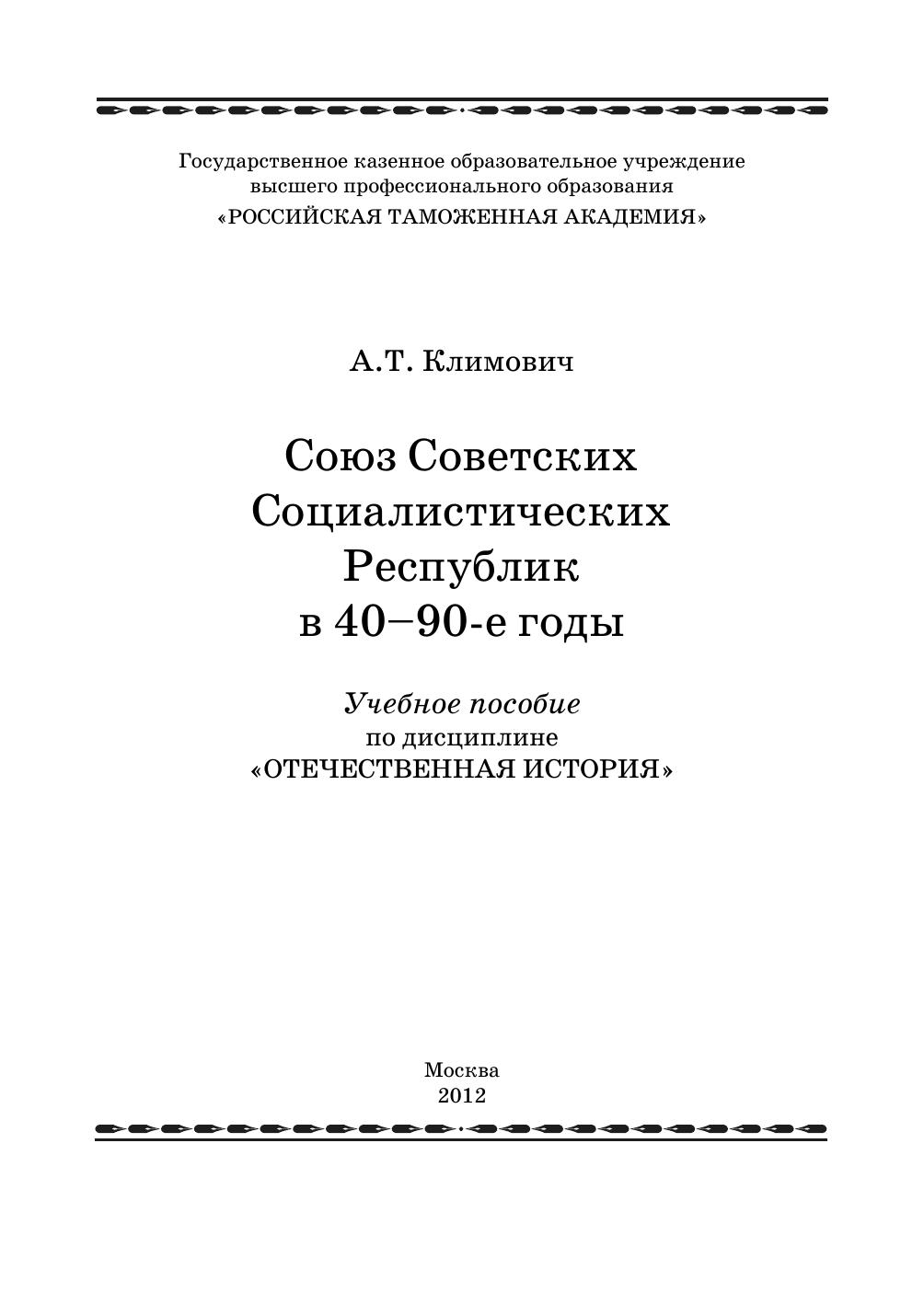 Союз Советских Социалистических Республик в 40 - 90-е годы: учебное пособие