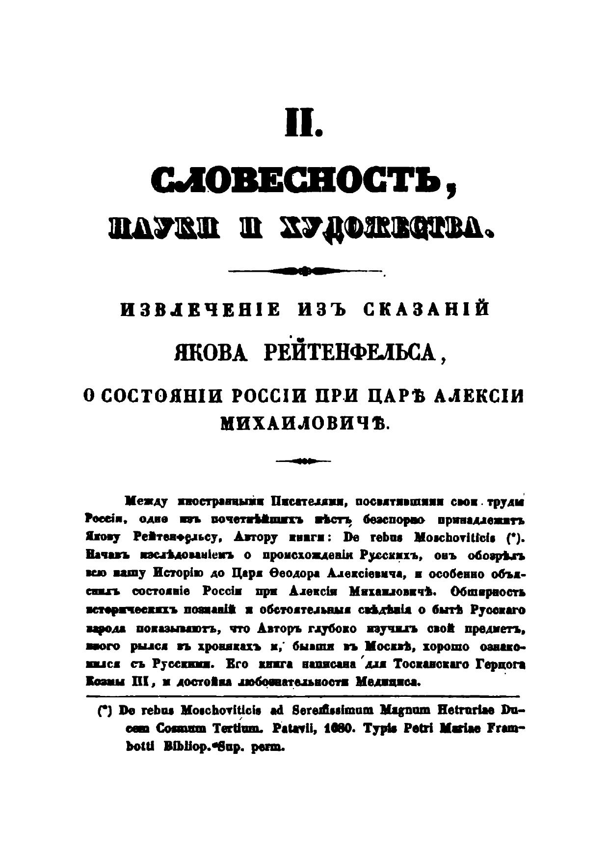 Извлечение из сказаний Я. Рейтенфельса о состоянии России при царе Алексее Михайловиче