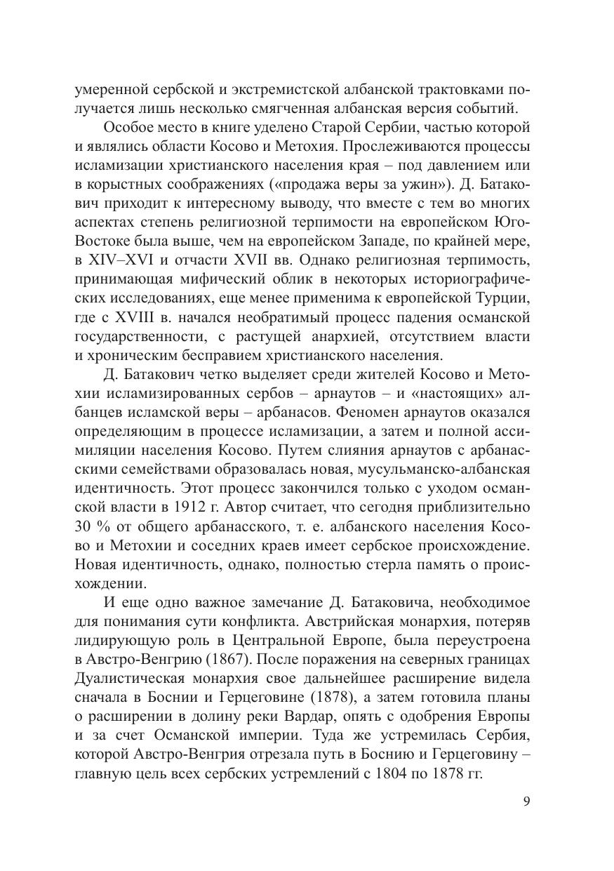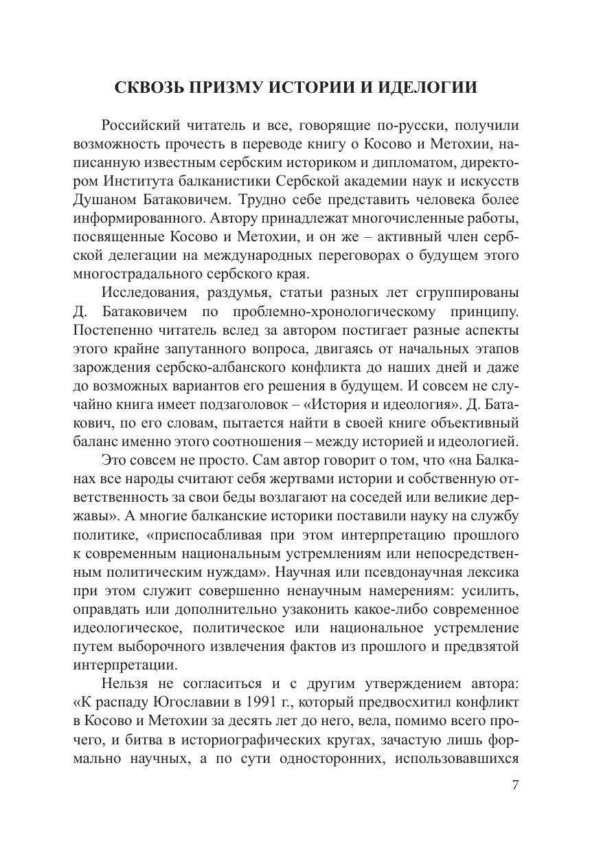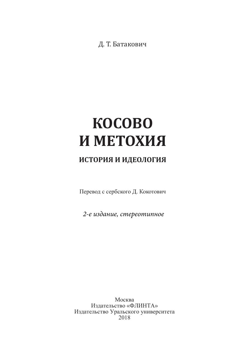 Книга известного сербского историка и дипломата, директора Института балканистики Сербской академии наук и искусств (САНУ) Душана Батаковича посвящена детальному анализу эволюции косовского вопроса в XVIII – начале XXI вв. Особое внимание автор уделяет проблеме статуса автономного края Косово и Метохия в период кризиса и распада СФРЮ, вооруженных конфликтов на территории бывшей Югослави и ситуации в Косово после агрессии НАТО против Союзной республики Югославия в 1999 г. Книга адресована специалистам – историкам, международникам – и широкому кругу читателей.