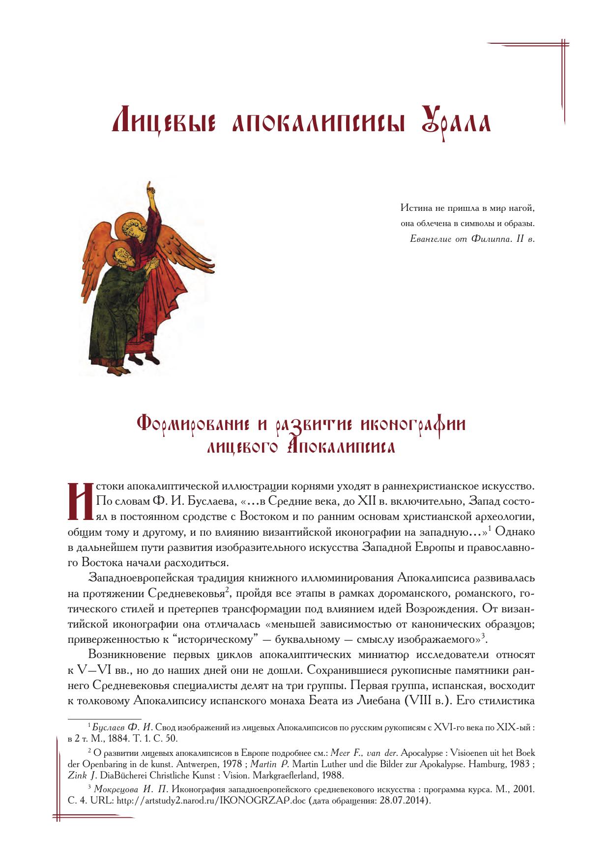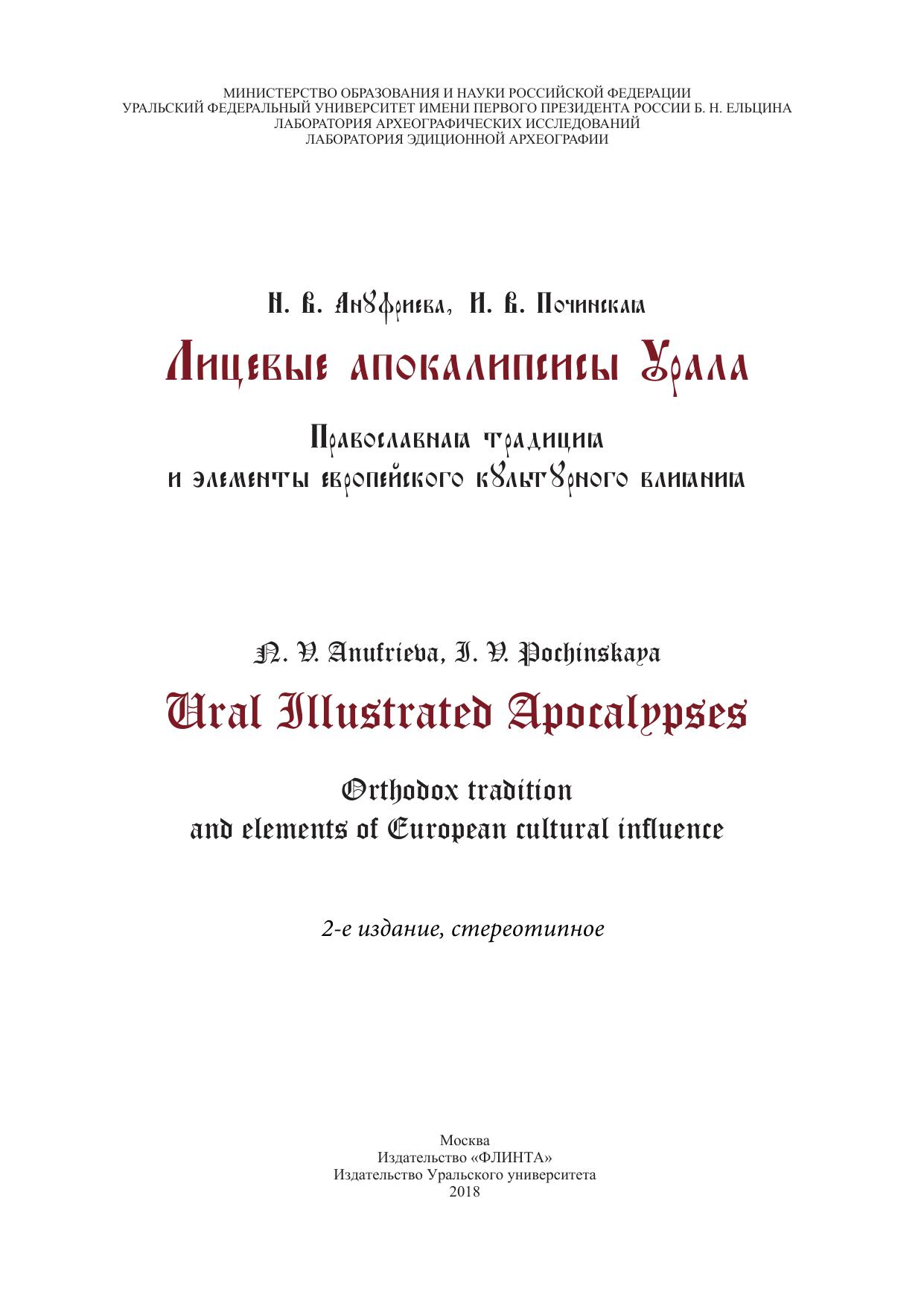 Лицевые апокалипсисы Урала: Православная традиция и элементы европейского культурного влияния = Ural Illustrated Apocalypses: Orthodox tradition and elements of European cultural influence культурного влияния