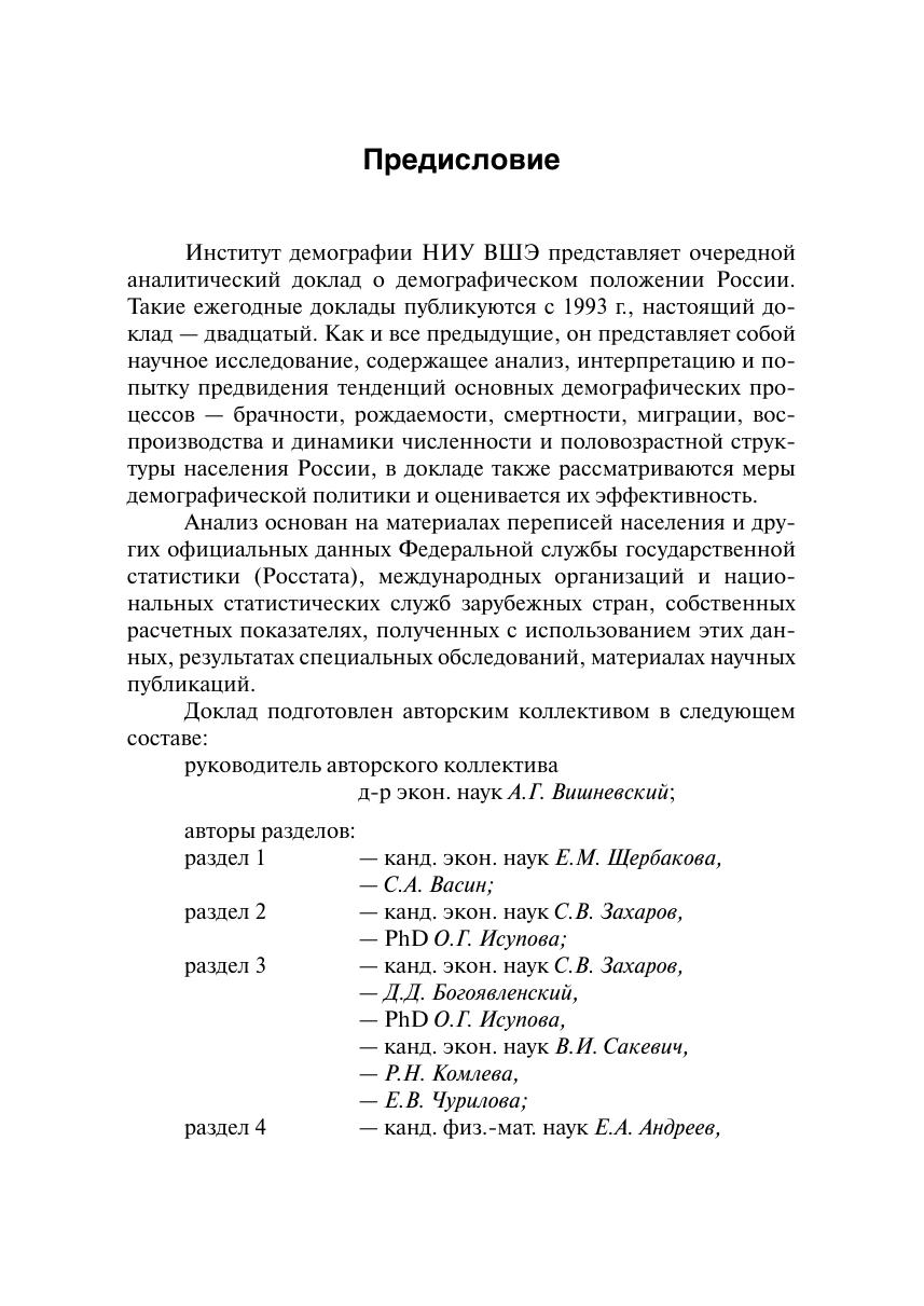В двадцатом выпуске серии ежегодных аналитических докладов Института демографии НИУ ВШЭ, которые регулярно публикуются с 1993 г., содержится анализ текущей демографической ситуации в России на фоне долговременных тенденций ее развития, исследуются новейшие тенденции основных демографических процессов — брачности, рождаемости, смертности, миграции, воспроизводства и динамики численности населения страны. Анализ основан на официальных данных Федерального агентства государственной статистики Российской Федерации (Росстата), международных организаций и национальных статистических служб зарубежных стран, собственных расчетных показателях, полученных с использованием этих данных, результатах специальных обследований, материалах научных публикаций. Для исследователей, работающих в области демографии и смежных дисциплин, лиц, принимающих решения, сотрудников государственных органов всех уровней, преподавателей и студентов высших учебных заведений.