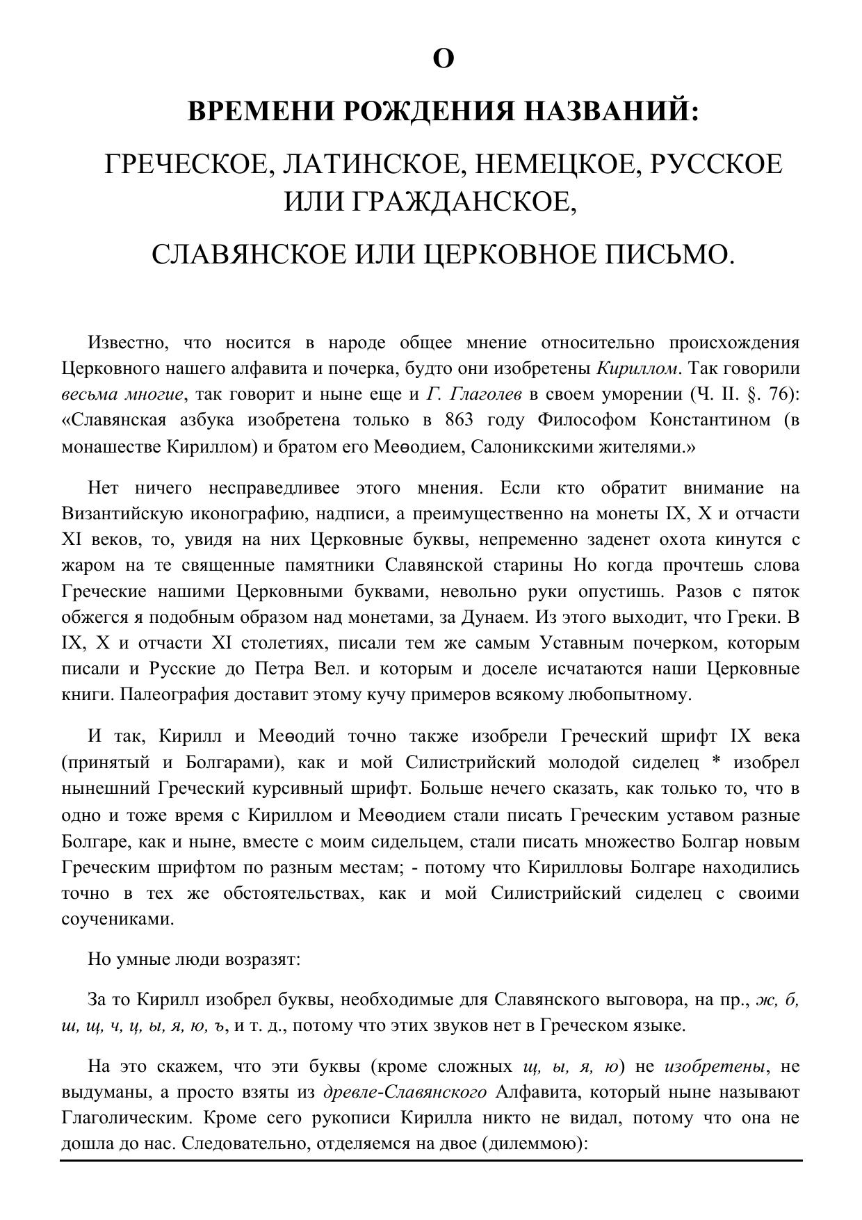 О времени рождения названий. Греческое, латинское, немецкое, русское или гражданское, славянское или церковное письмо