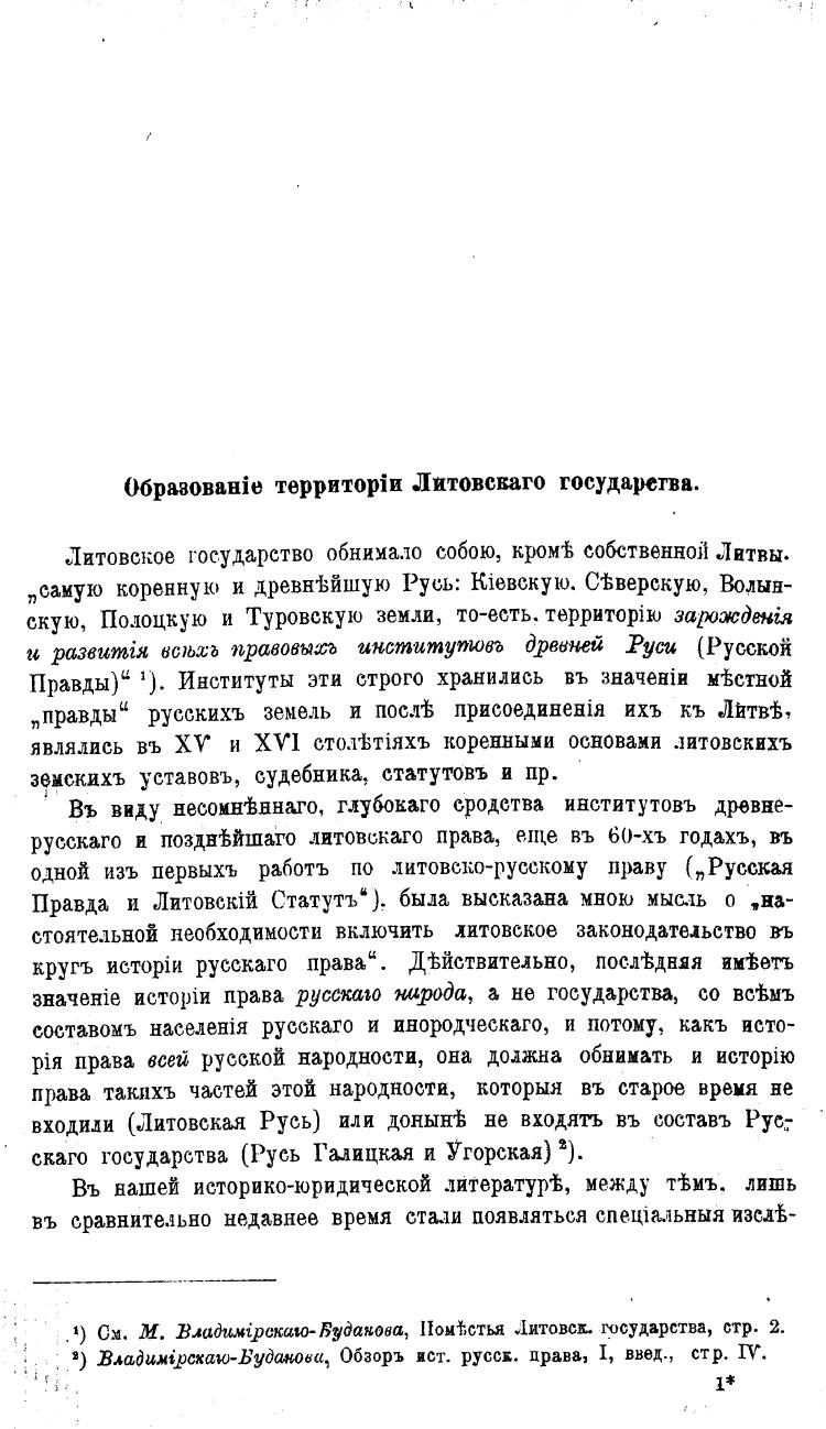 Очерки истории литовско-русского права. Образование территории Литовского государства
