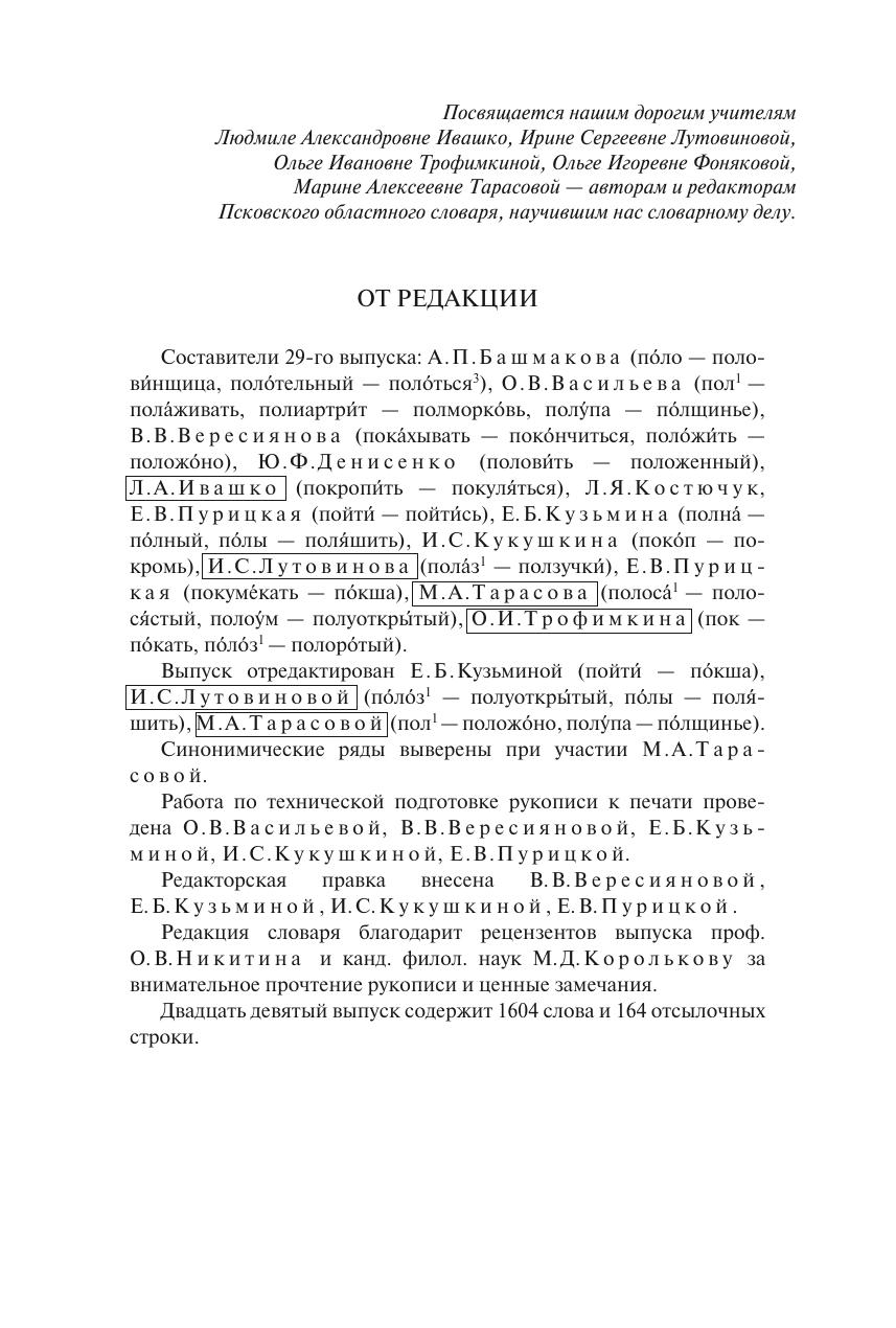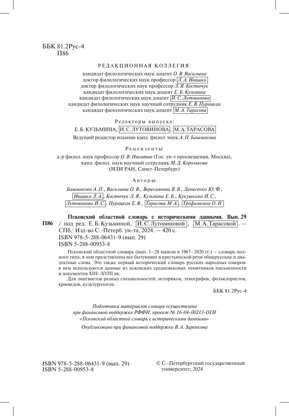 Псковский областной словарь (вып. 1-28 вышли в 1967-2020 гг.) - словарь полного типа, в нем представлены все бытующие в крестьянской речи общерусские и диалектные слова. Это также первый исторический словарь русских народных говоров: в нем используются данные из псковских средневековых памятников письменности и документов XIII-XVIII вв. Для лингвистов разных специальностей, историков, этнографов, фольклористов, краеведов, культурологов.