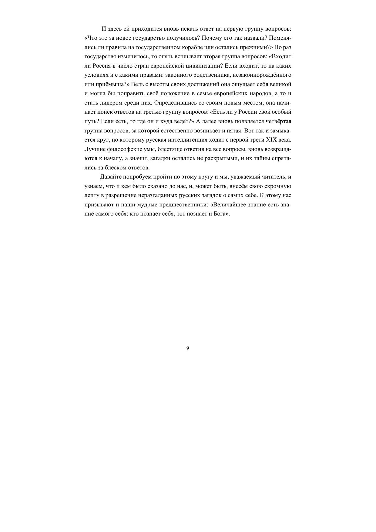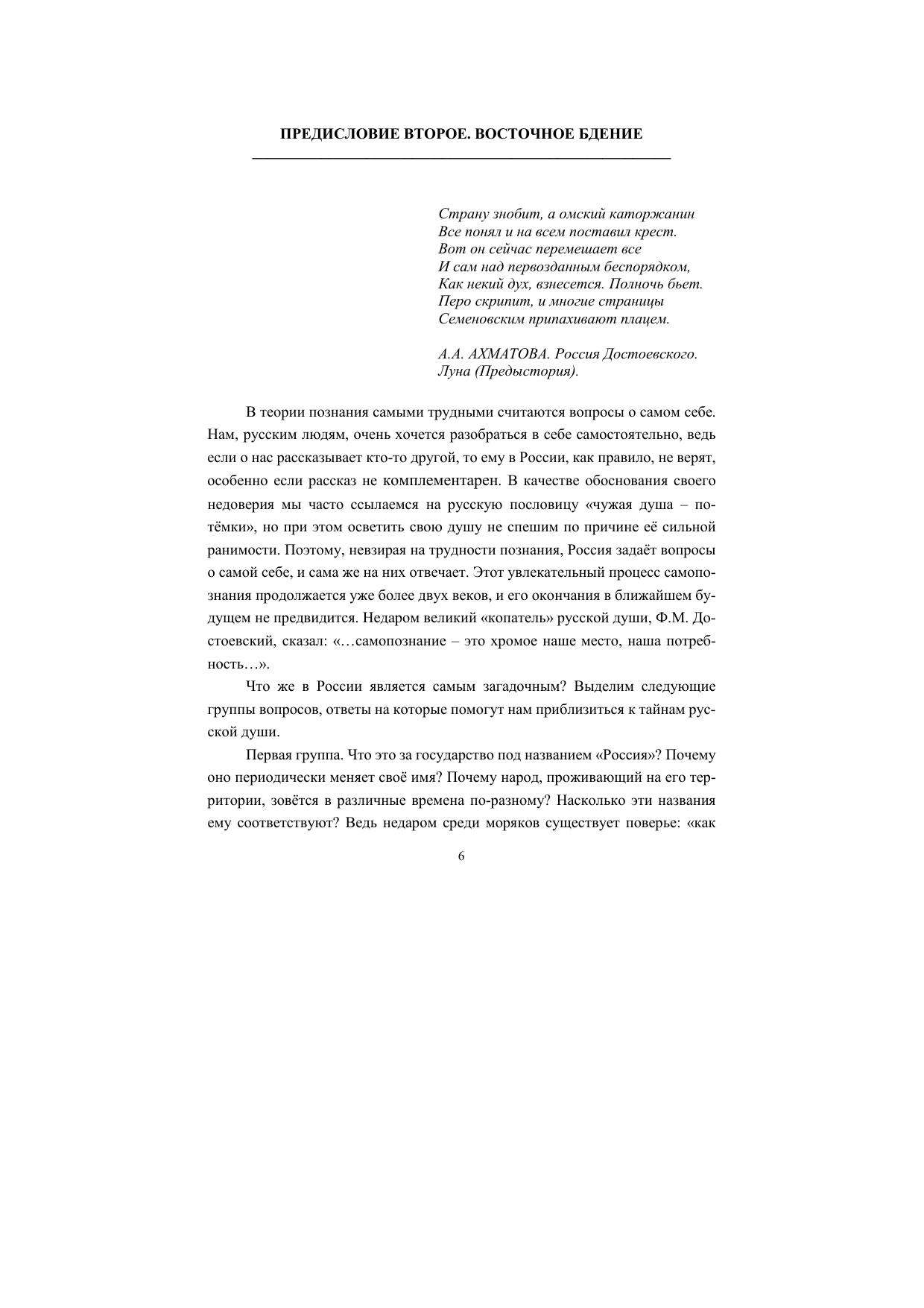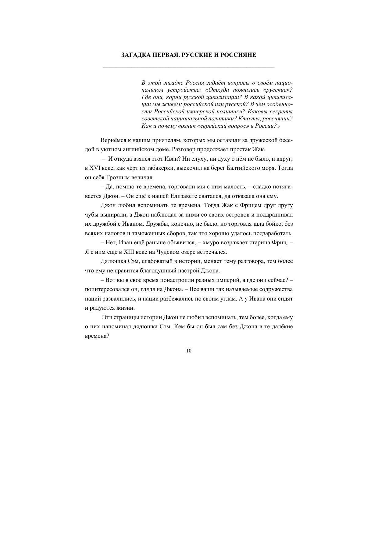 В своей книге автор на основе событий прошедших эпох реконструирует формирование ментальности русского человека в процессе рождения русской нации и, соединив её с современной действительностью, выявляет преемственность, властвующую над развитием русской цивилизации. Это позволяет объяснить особый путь развития русской цивилизации, её стремление к величию, характер взаимодействия между русской и европейской цивилизациями, а также понять законы утверждения русского многонационального государства и его способность возрождаться после государственных катастроф.