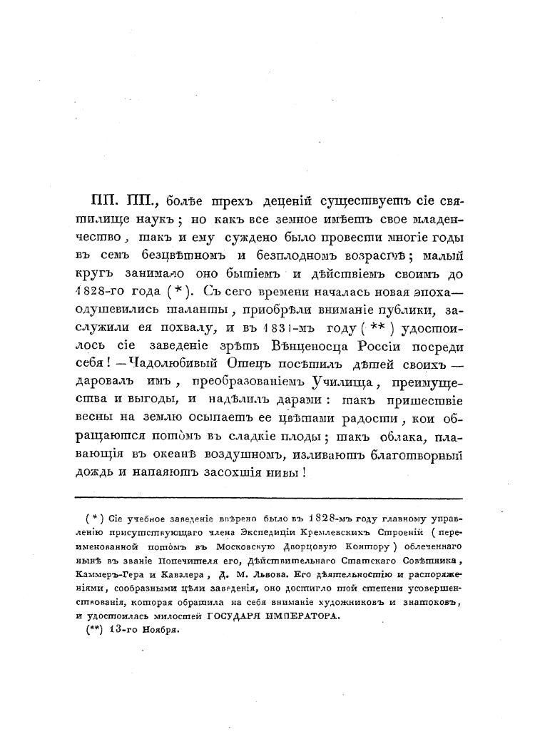 Речь об основаниях истинного просвещения и о ходе оного в России, говоренная на торжественном акте Московского дворцового архитектурного училища ученым секретарем Конференции оного Училища, коллежским асессором Егором Классеном, марта 24-го дня 1833 года