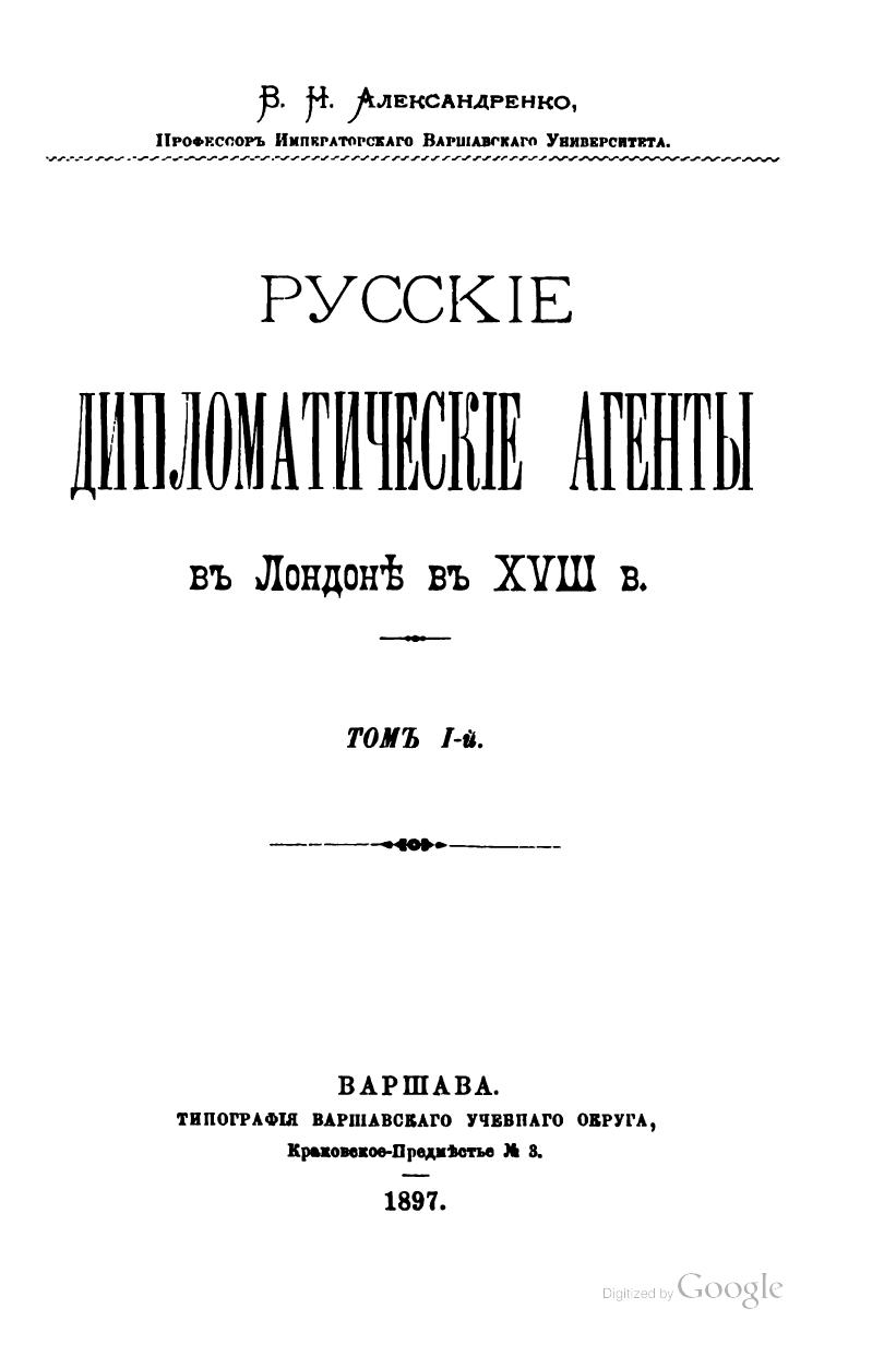 Русские дипломатические агенты в Лондоне в XVIII веке