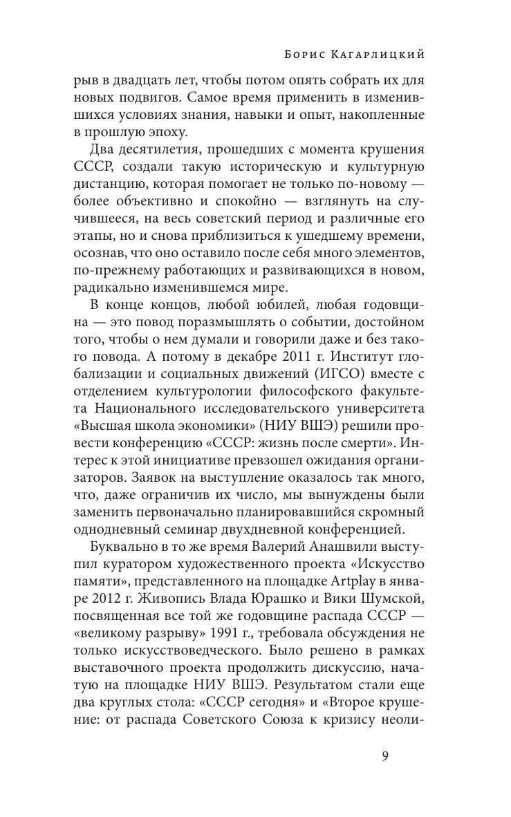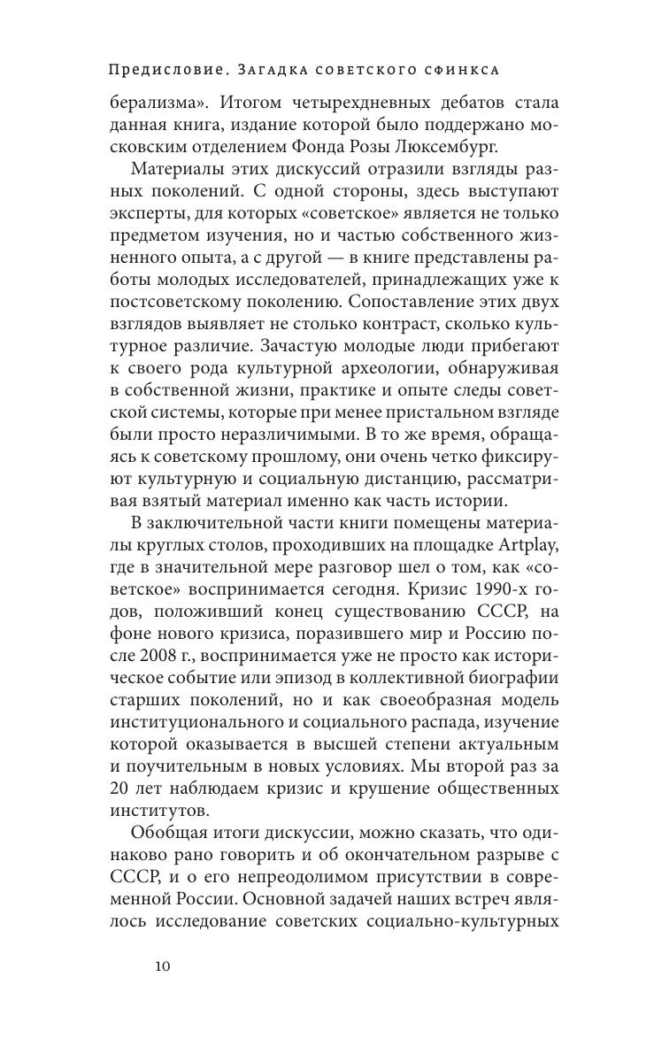 Книга основана на материалах конференции «СССР: жизнь после смерти» и круглого стола «Второе крушение: от распада Советского Союза к кризису неолиберализма», состоявшихся в декабре 2011 г. и январе 2012 г. Дискуссия объединила экспертов и исследователей разных поколений: для одних «советское» является частью личного опыта, для других — историей. насколько и в какой форме продолжается жизнь советских социально-культурных и бытовых практик в постсоветском, капиталистическом обществе? Является ли «советское наследие» препятствием для развития нового буржуазного общества в России или, наоборот, элементом, стабилизирующим новую систему? Оказывается ли «советское» фактором сопротивления или ресурсом адаптации к реальности неолиберального порядка? Ответы на эти вопросы, казавшиеся совершенно очевидными массовому сознанию начала 1990-х годов, явно должны быть найдены заново.