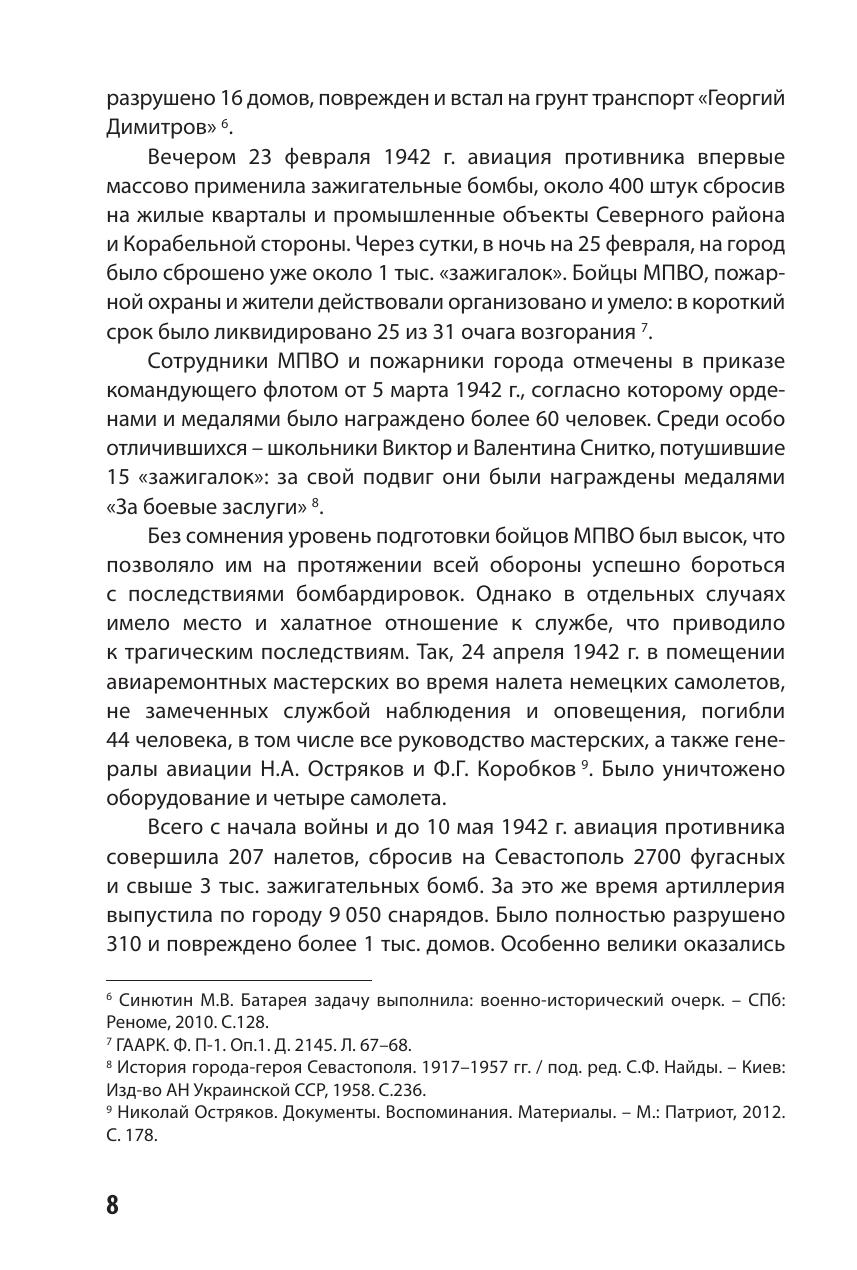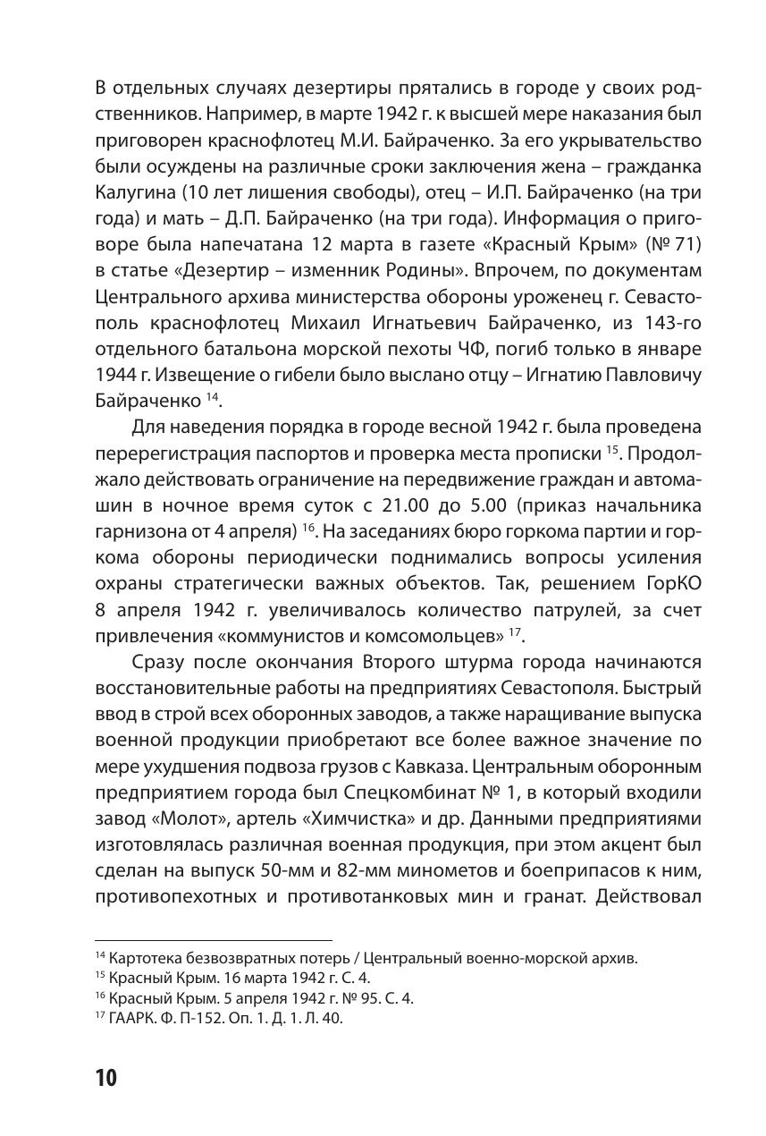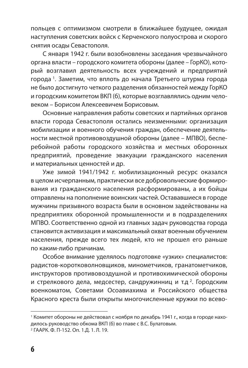Сегодня уже трудно сосчитать количество книг, рассказывающих о героической обороне Севастополя в годы Великой Отечественной войны (и – шире – во время Второй мировой, ведь о «кровавой жатве», случившейся, на Крымском полуострове летом 1942-го, много пишут и немецкие историки). Это и пафосные мемуары участников, и исторические исследования, и художественные произведения. Однако хочется верить, что хроника, подготовленная уральскими исследователями О. Нуждиным и С. Рузаевым и рассказывающая как о разнообразной деятельности городских властей Севастополя и повседневной жизни горожан, так и о ситуации на фронте во время так называемого Третьего штурма Приморской крепости не затеряется среди прочего книжного обилия на данную тему. Залогом этому – опора авторов на неизвестные прежде архивные материалы, на воспоминания жителей города, опубликованные только сейчас, и введение в научный оборот многочисленных документальных свидетельств той суровой поры. Книга адресована всем, кто интересуется историей, кому дорог бессмертный подвиг наших отцов, дедов и прадедов, отстоявших свободу нашей Родины.