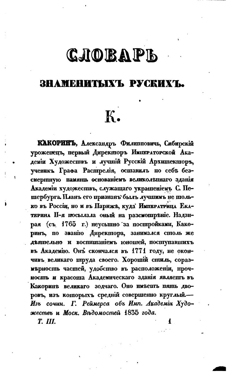 Словарь достопамятных людей русской земли: В 5 ч. — М.: Тип. Августа Семёна, 1836. Том III