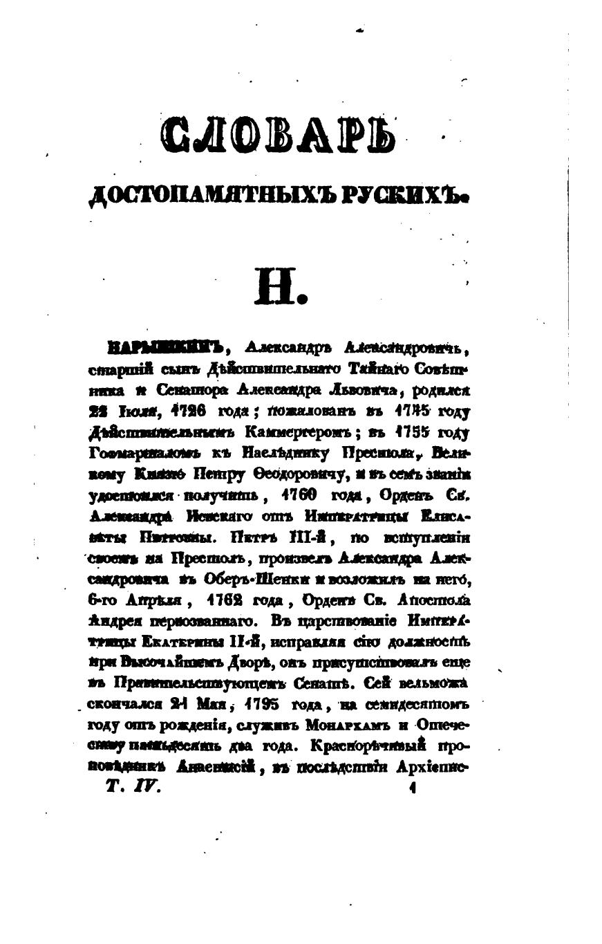Словарь достопамятных людей русской земли: В 5 ч. — М.: Тип. Августа Семёна, 1836. Том IV
