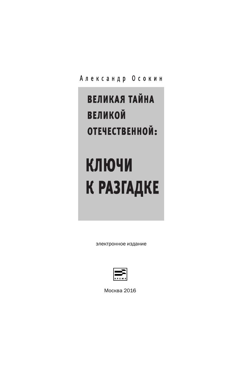 Великая тайна Великой Отечественной. Ключи к разгадке