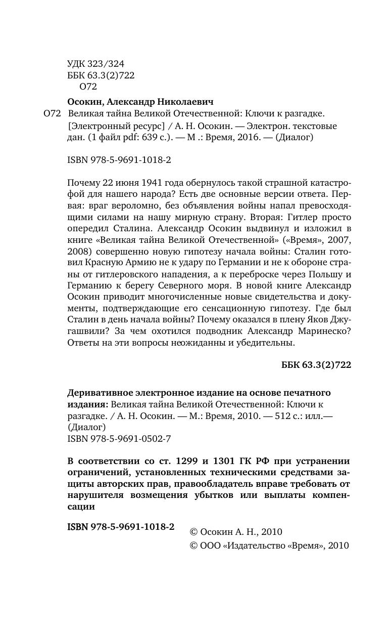 Почему 22 июня 1941 года обернулось такой страшной катастрофой для нашего народа? Есть две основные версии ответа. Первая: враг вероломно, без объявления войны напал превосходящими силами на нашу мирную страну. Вторая: Гитлер просто опередил Сталина. Александр Осокин выдвинул и изложил в книге «Великая тайна Великой Отечественной» cовершенно новую гипотезу начала войны: Сталин готовил Красную Армию не к удару по Германии и не к обороне страны от гитлеровского нападения, а к переброске через Польшу и Германию к берегу Северного моря. В новой книге Александр Осокин приводит многочисленные новые свидетельства и документы, подтверждающие его сенсационную гипотезу. Где был Сталин в день начала войны? Почему оказался в плену Яков Джугашвили? За чем охотился подводник Александр Маринеско? Ответы на эти вопросы неожиданны и убедительны.