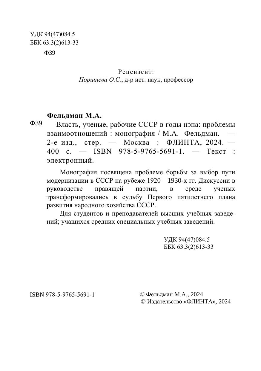 Власть, ученые, рабочие СССР в годы НЭПА: проблема взаимоотношений