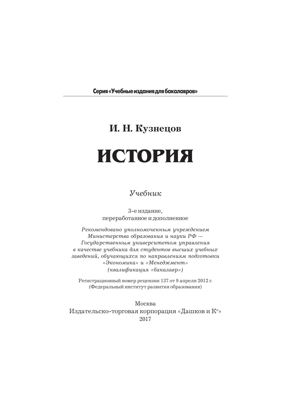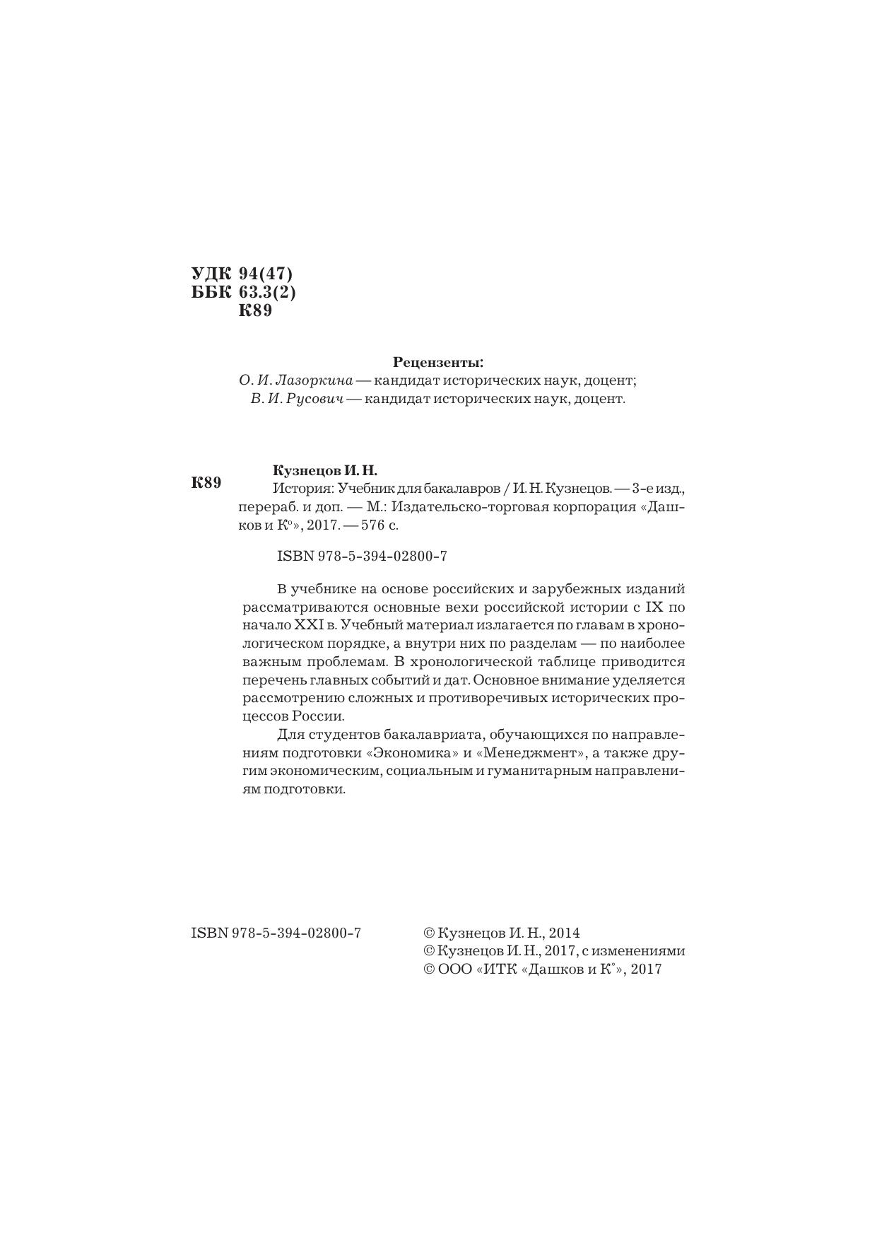 В учебнике на основе российских и зарубежных изданий рассматриваются основные вехи российской истории с IX по начало XX в. Учебный материал излагается по главам в хронологическом порядке, а внутри них по разделам - по наиболее важным проблемам. В хронологической таблице приводится перечень главных событий и дат. Основное внимание уделяется рассмотрению сложных и противоречивых исторических процессов России. Для студентов бакалавриата, обучающихся по направлениям подготовки "Экономика" и "Менеджмент", а также другим экономическим, социальным и гуманитарным направлениям подготовки