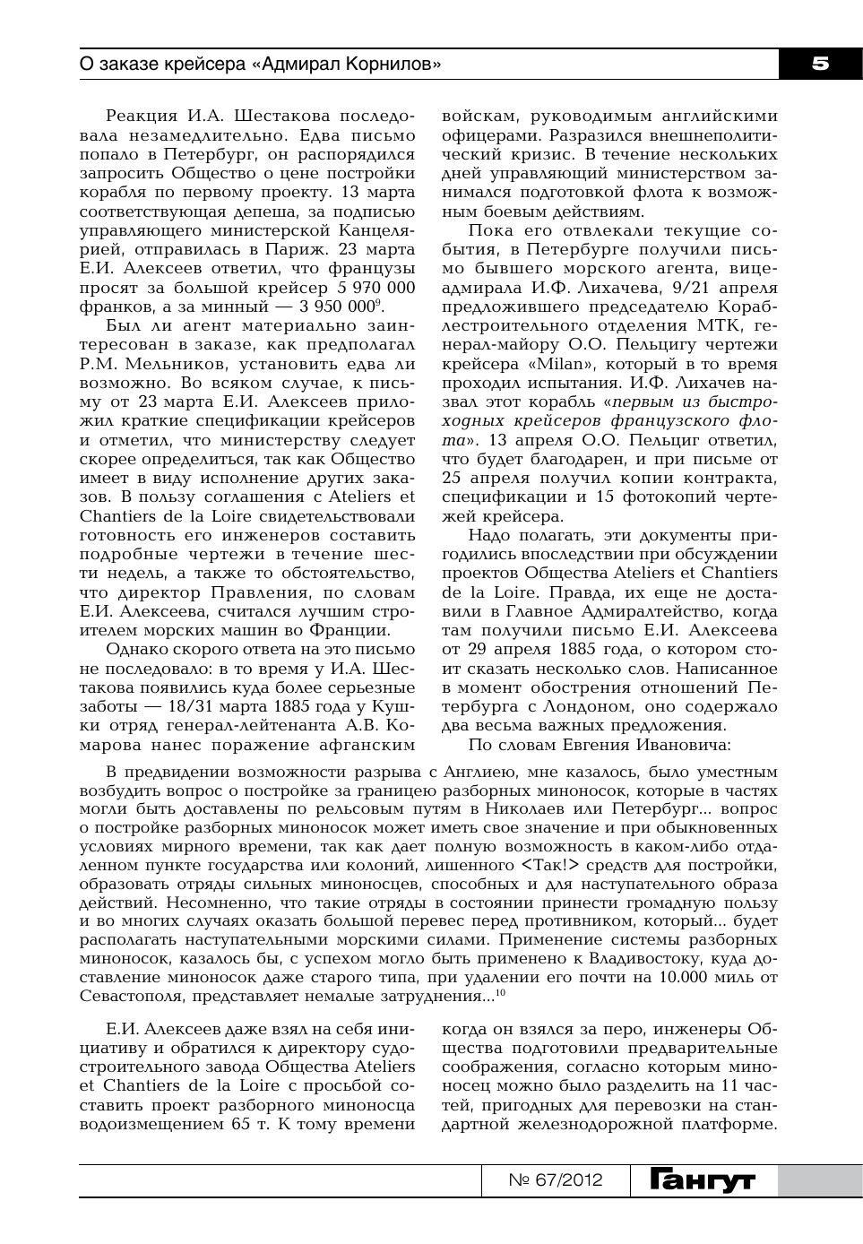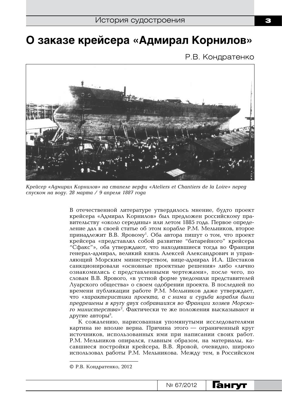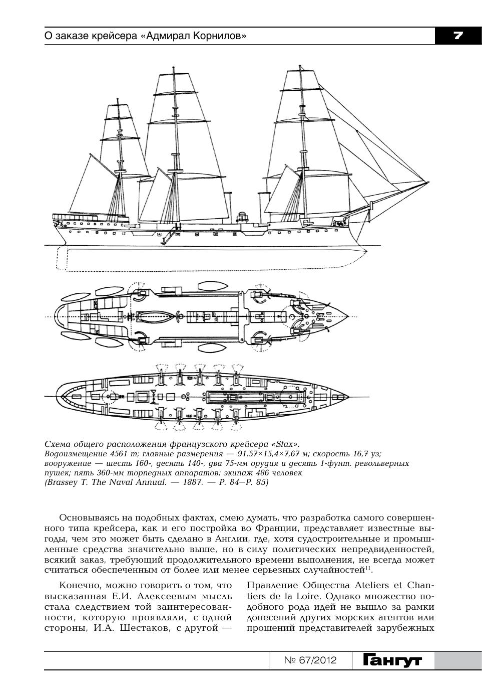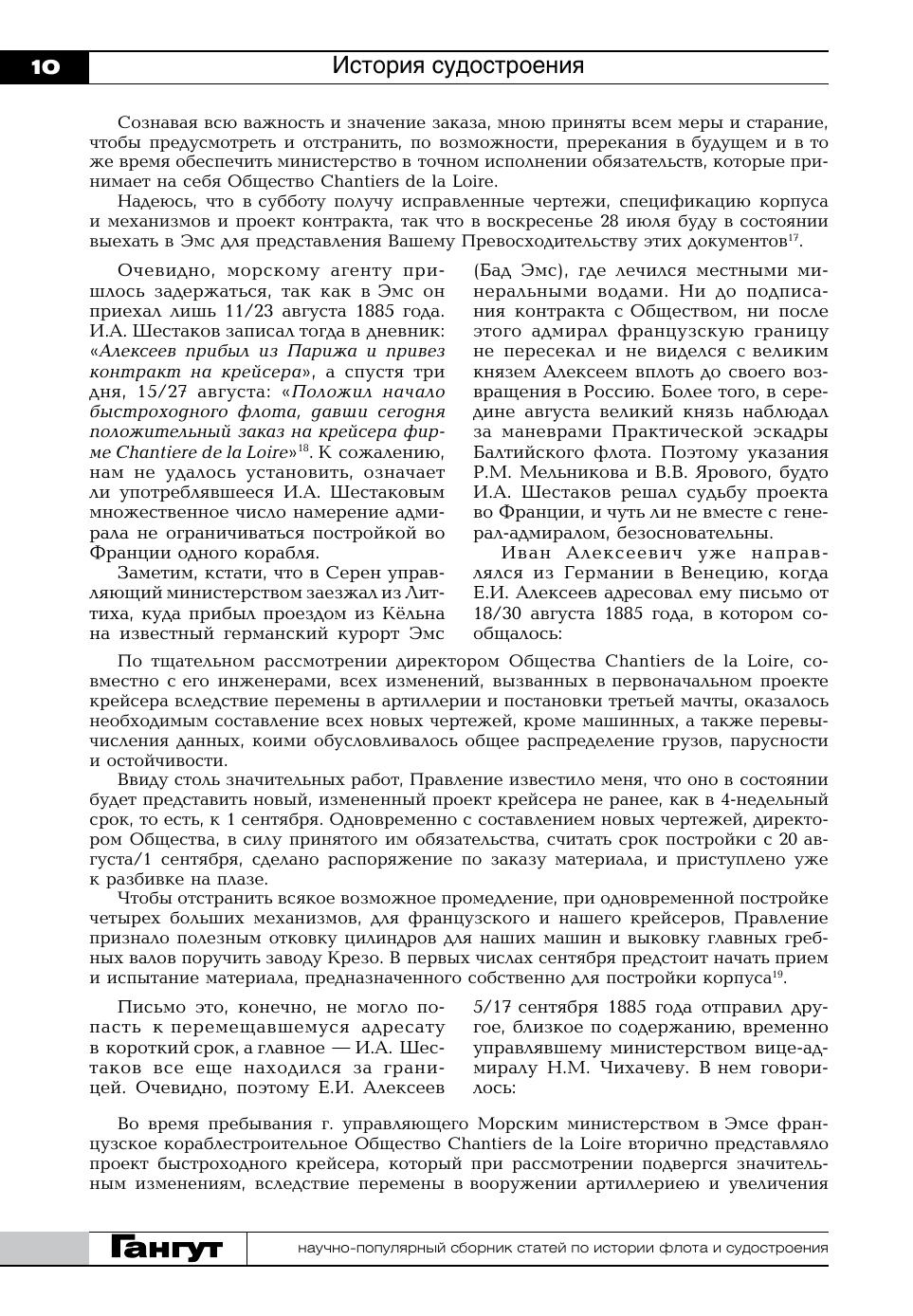 В сборнике помещены различные материалы по истории отечественного и зарубежных флотов. Вопросы истории судостроения, вооружения и техники рассматриваются в материалах о заказе Россией во Франции в середине 1880-х годов крейсера «Адмирал Корнилов», проектировании и постройке в 1940-х годах шведских крейсеров типа «Tre Kronor» и о проведенных на Черном море в 1944 году испытаниях по запуску с катапульты крейсера «Молотов» специально дооборудованных для этого английских истребителей «Спитфайер». Период эпохи парусного флота представлен заключительными частями публикаций о победах адмирала Ф.Ф. Ушакова и о попытке императрицы Екатерины II усилить Черноморский флот путем проводки через черноморские проливы фрегатов под видом торговых судов, а также в статье о борьбе с контрабандой у восточного берега Черного моря в первой половине XIX века. О боевых действиях на море рассказывается в публикациях о прорыве польской подводной лодки «Wilk» в сентябре 1939 года из Балтики через Датские проливы к берегам Великобритании и о бое французских кораблей с таиландским броненосцем береговой обороны в январе 1941 года. Впервые на страницах сборника публикуются документы из фондов РГАВМФ, в которых рассматриваются вопросы перспективного развития авиации Балтийского флота по окончании Первой мировой войны, а отдельная статья посвящена снятию с мели в 1953 году теплохода «Мусоргский». Сборник иллюстрирован фотографиями, чертежами и схемами из государственных архивов, библиотек и частных собраний. Для широкого круга читателей, интересующихся историей флота и судостроения.