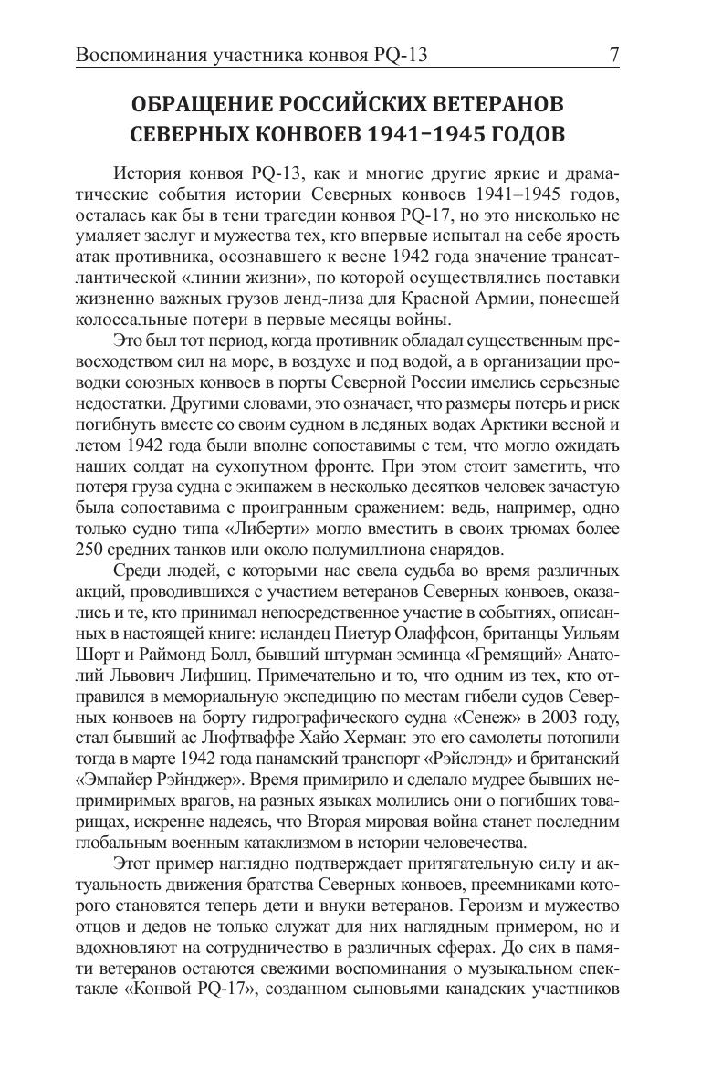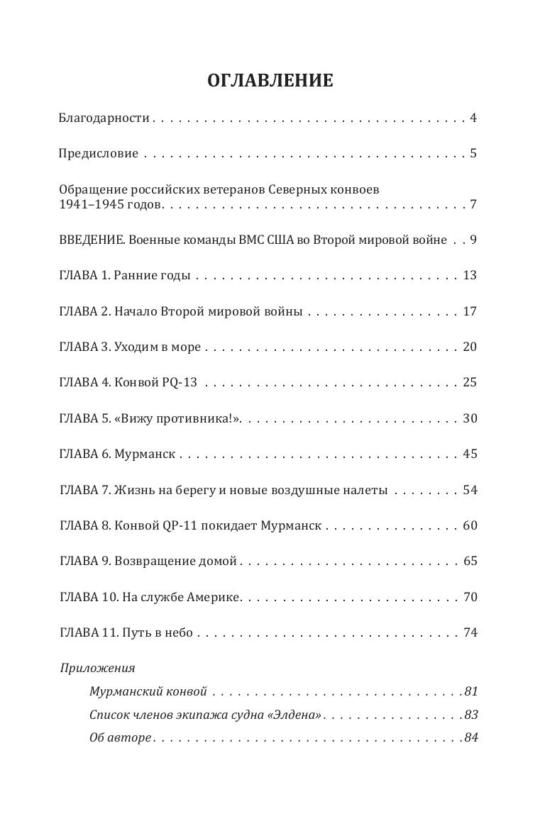 Впервые в России читатели смогут ознакомиться со свидетельствами американского ветерана Второй мировой войны, участника конвоя PQ-13 – первого союзного конвоя, подвергшегося яростным атакам германской авиации, надводных кораблей и подводных лодок, перед которыми была поставлена задача – сорвать поставки в Россию грузов ленд-лиза, доставлявшихся Северными конвоями.