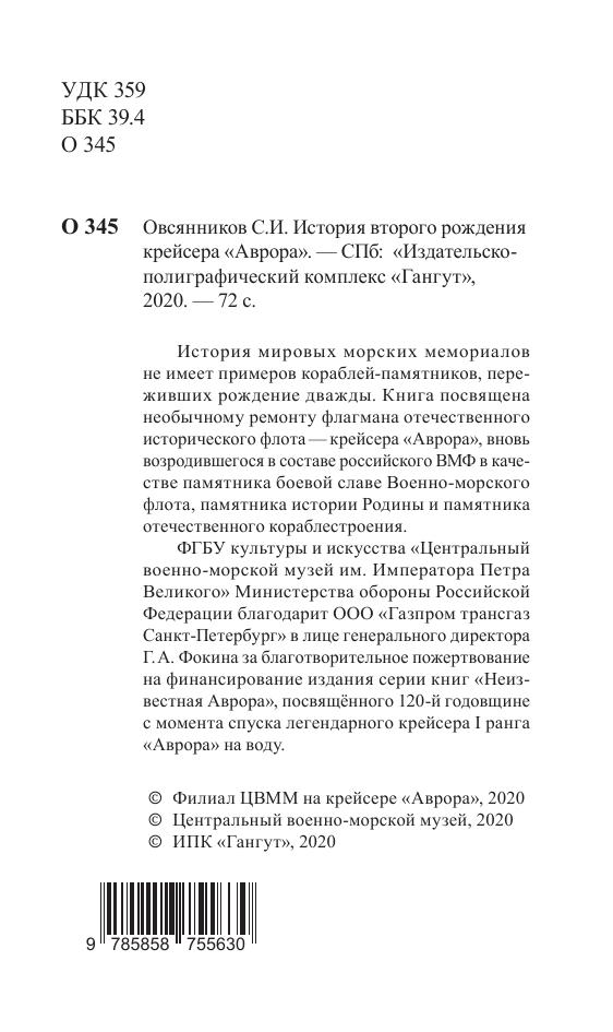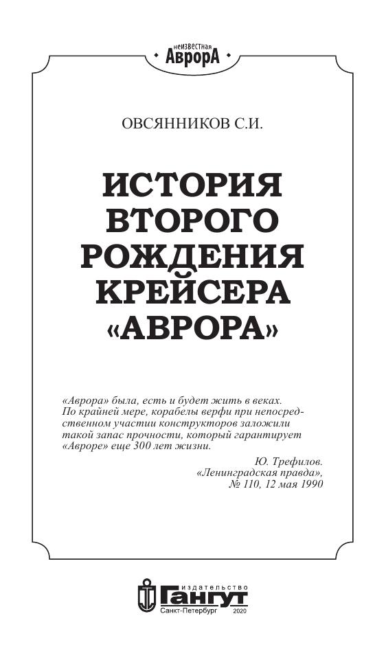 История мировых морских мемориалов не имеет примеров кораблей-памятников, переживших рождение дважды. Книга посвящена необычному ремонту флагмана отечественного исторического флота — крейсера «Аврора», вновь возродившегося в составе российского ВМФ в качестве памятника боевой славе Военно-морского флота, памятника истории Родины и памятника отечественного кораблестроения.