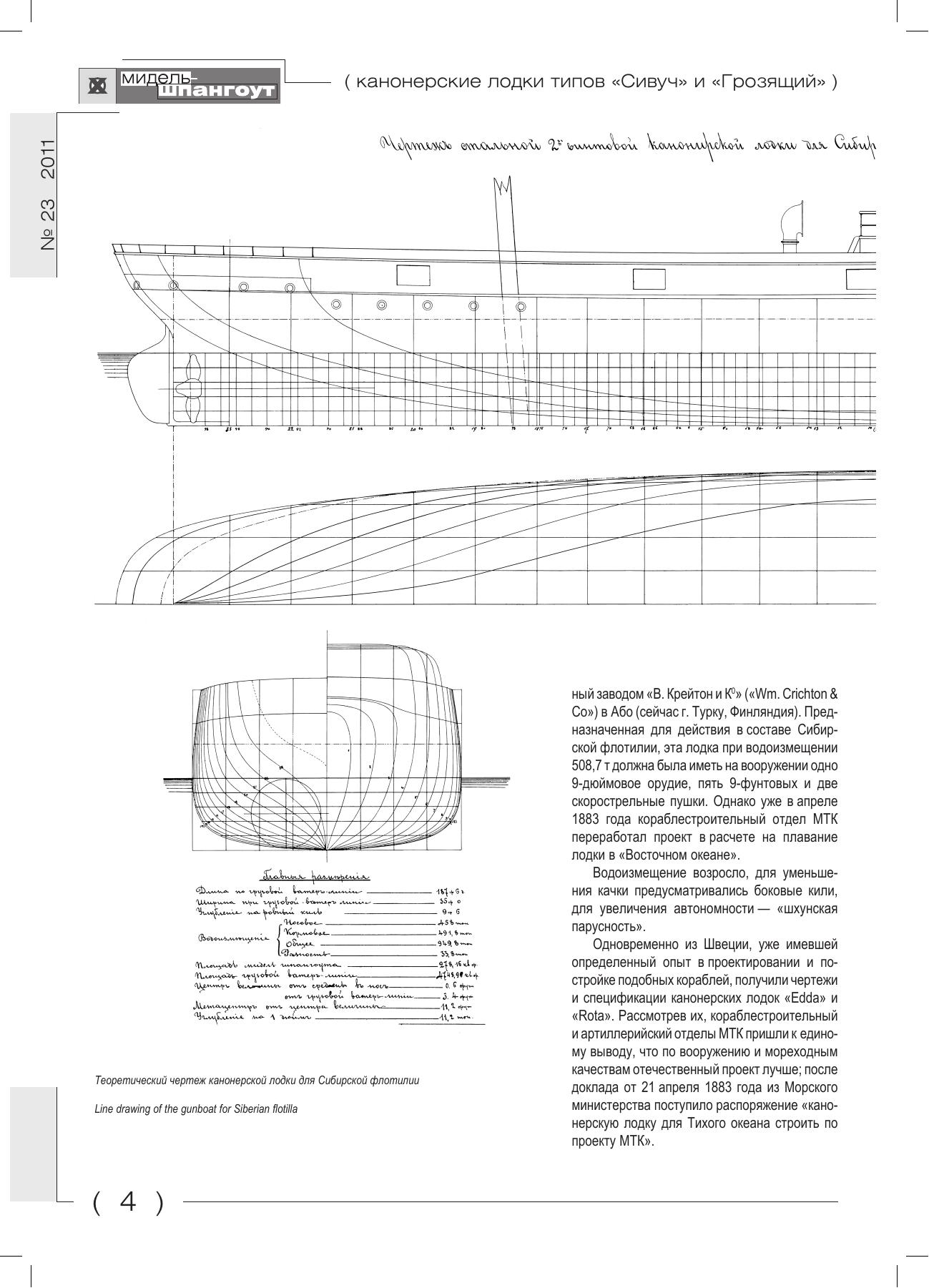 Канонерские лодки типов «Сивуч» и «Грозящий». Мидель-шпангоут. Выпуск 23